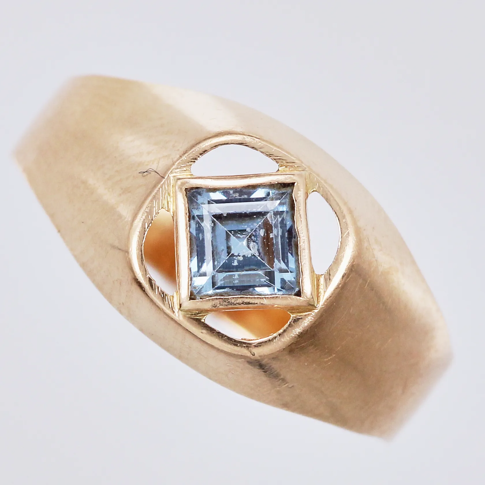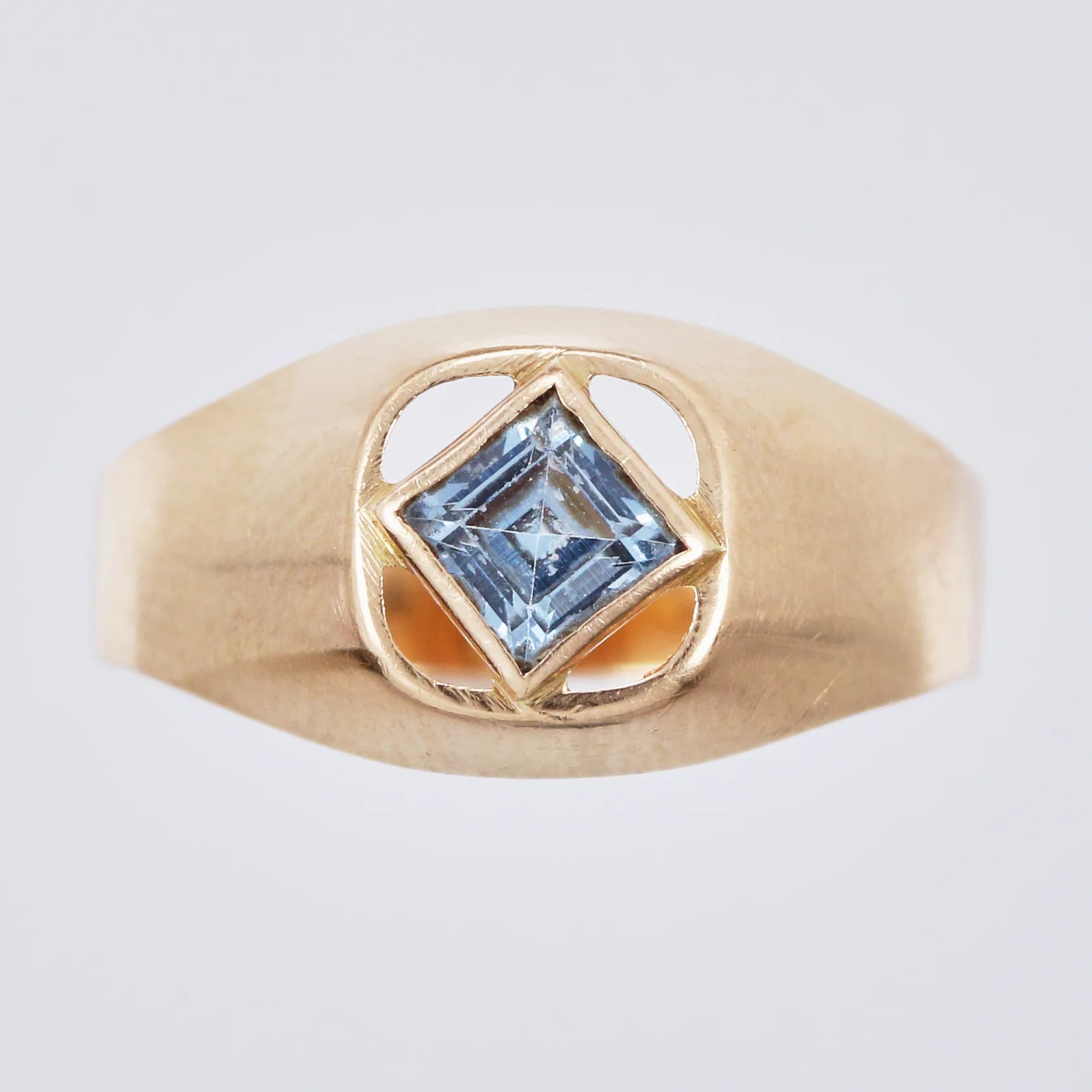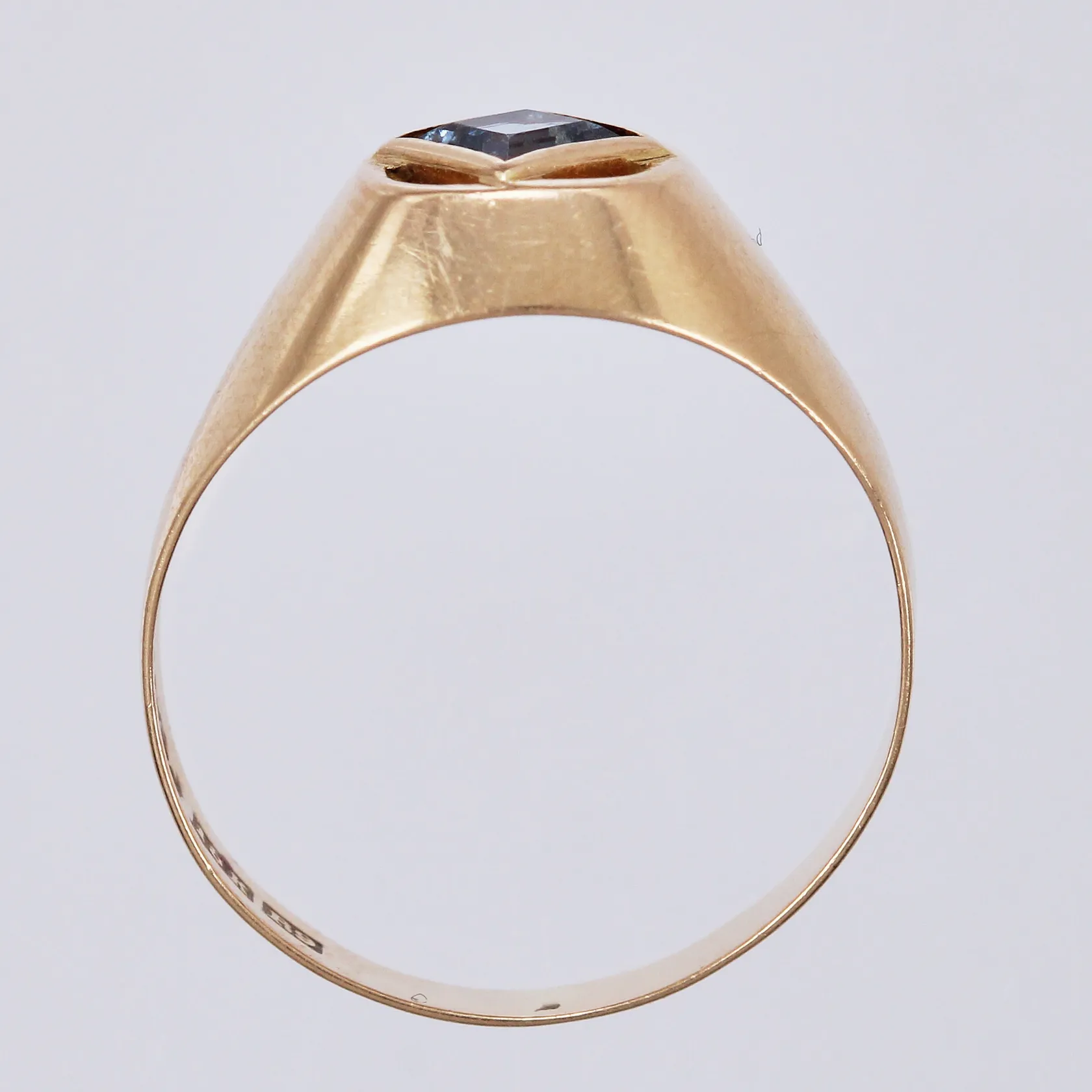 Ring med syntetisk sten, Hedbergs Guld 1967, stl: 16, bredd ca 3-8mm, 18K Vikt: 1,6 g.