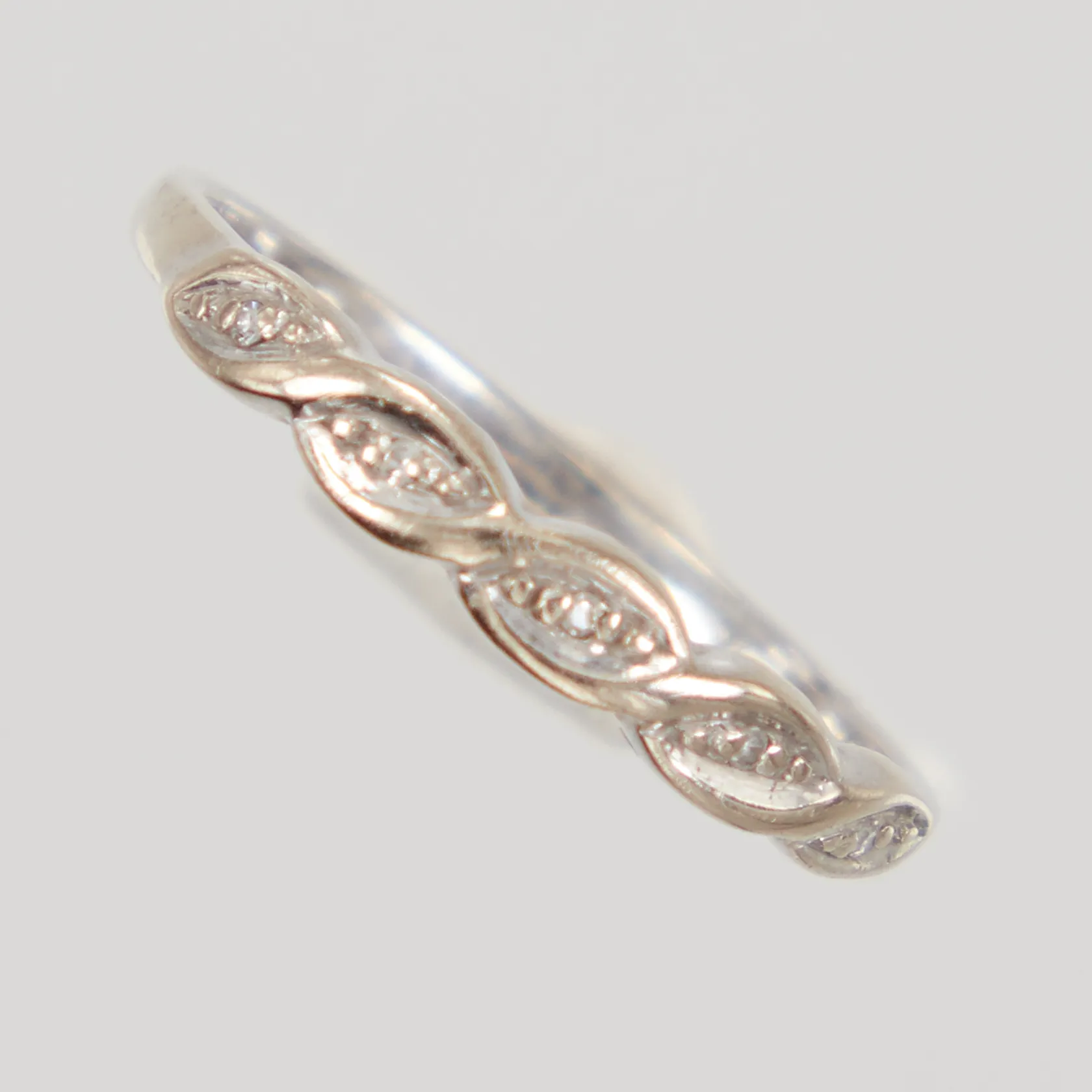 Ring med åttkantslipade diamanter ca 5 x 0,005ct, stl 16¾, bredd 1,6-3mm, vitguld 18K, Vikt: 1,7 g.