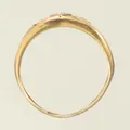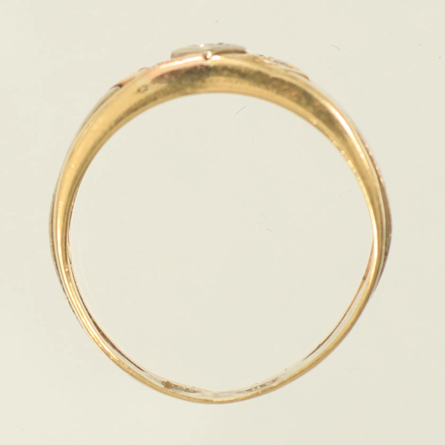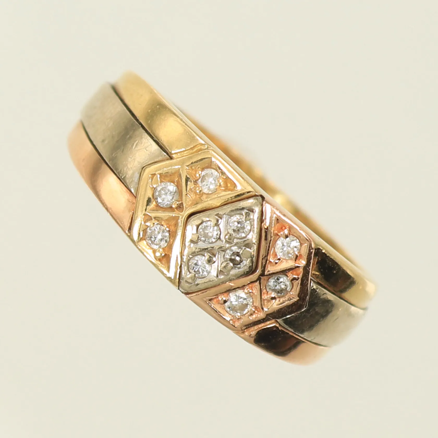 Ring trefärgad med vita stenar, stl 17¾ bredd 4-7mm, ojämn skena, 18K Vikt: 4,5 g.