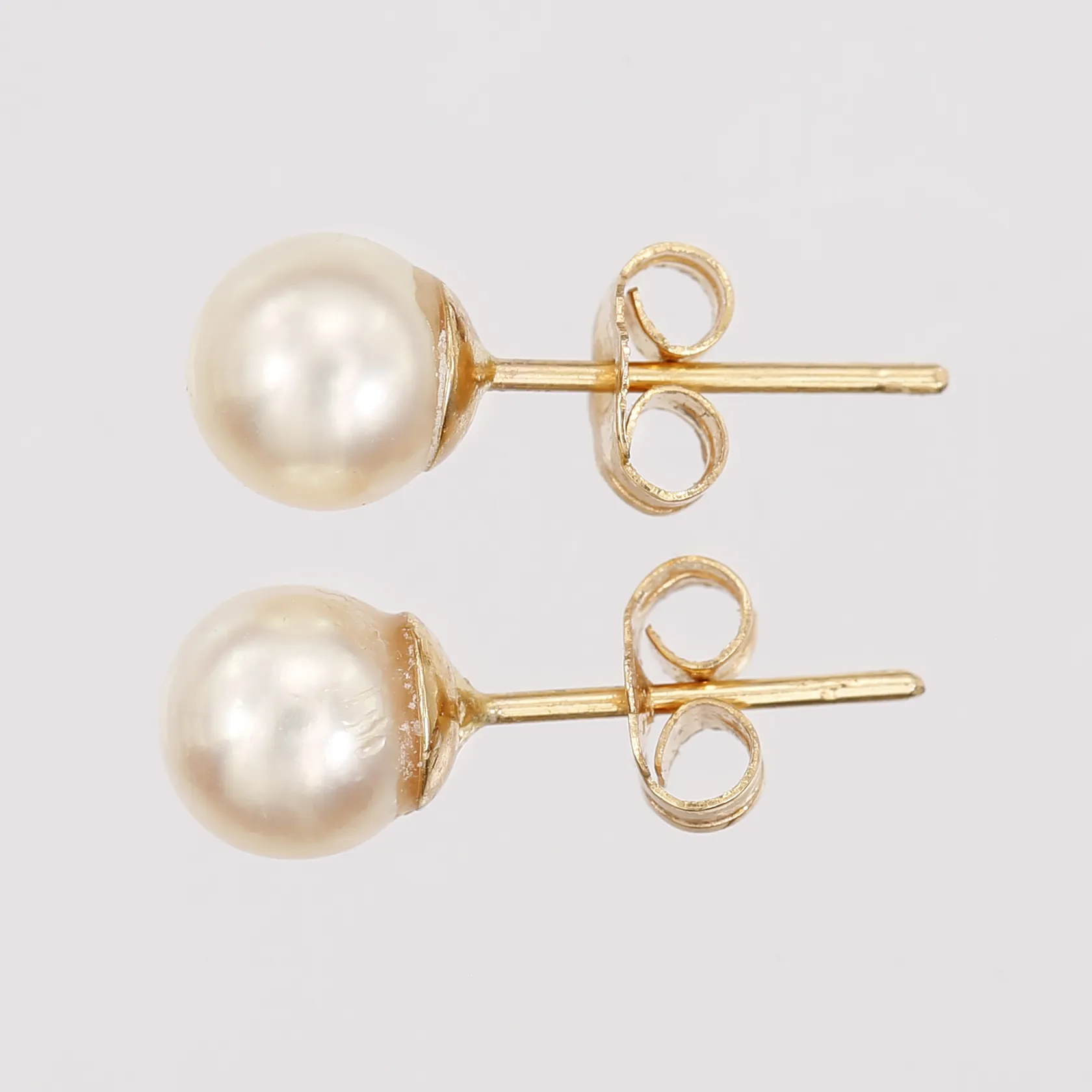 Örhängen med odlade saltvattenpärlor, Ø 6,5 - 7 mm, 14K guld Vikt: 1,4 g.