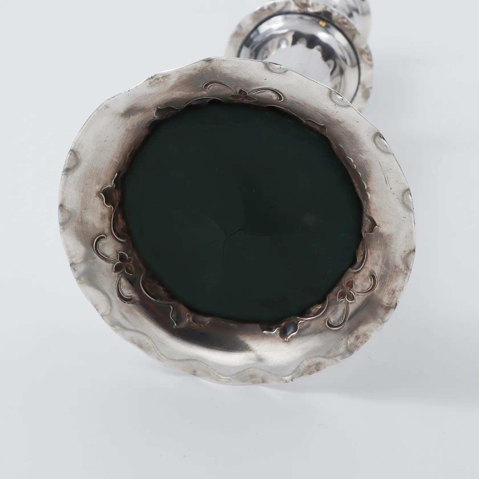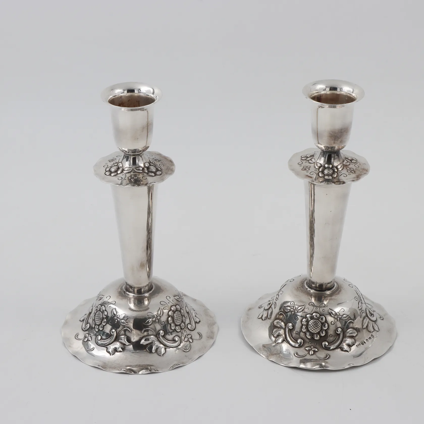 Ett par ljusstakar mönstrade, höjd 16cm, fyllda bottnar, Guldsmedsaktiebolaget I Stockholm 1951, silver Vikt: 420 g.