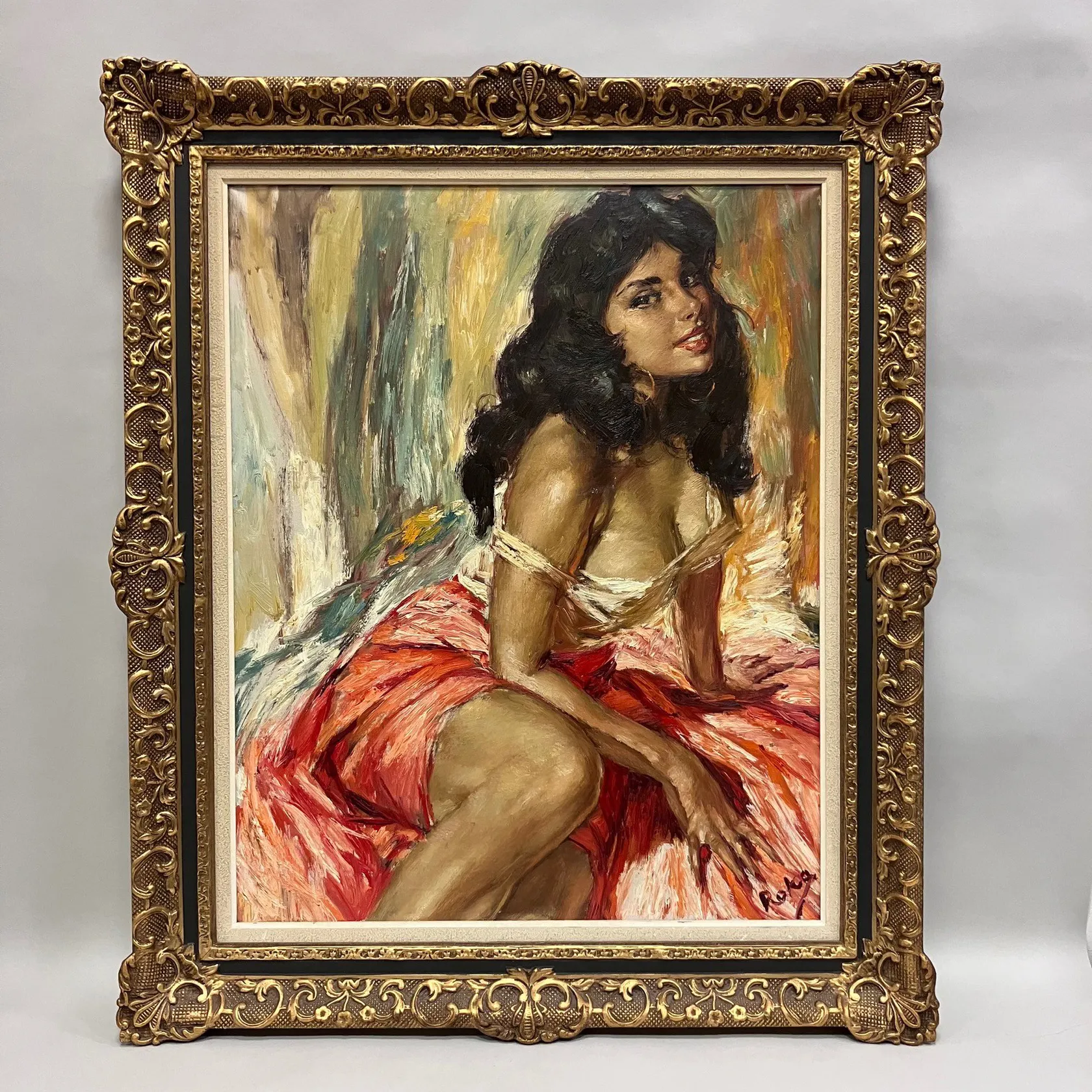 Tavla Charles Roka, kvinnoporträtt, olja på duk, 81x65cm, yttermått ram 104x87cm Skickas med postpaket. Omfattas av BUS-avgift.