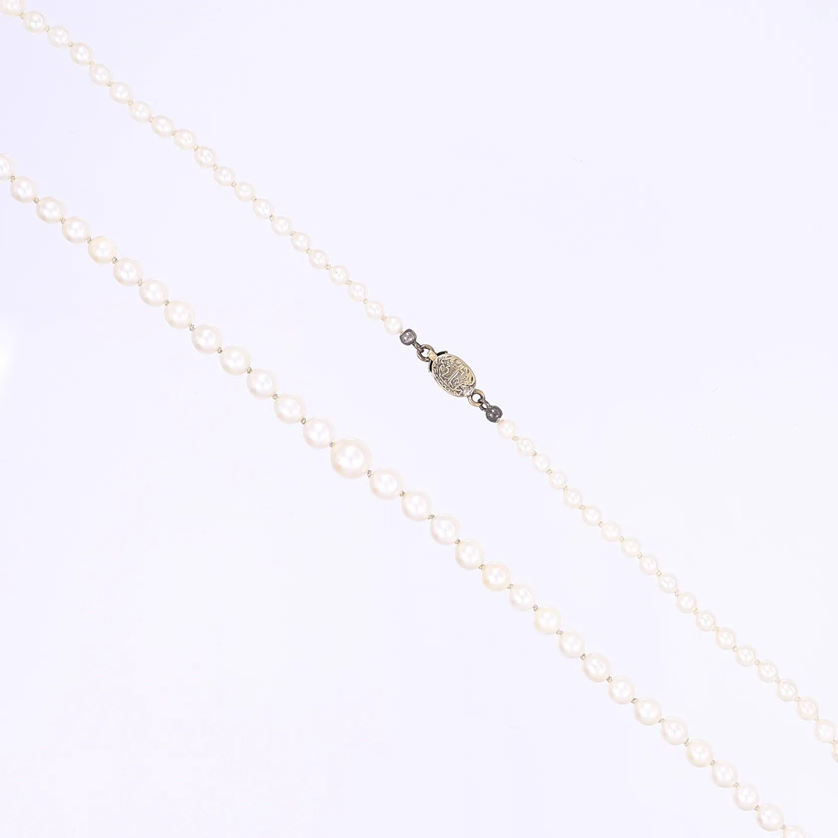 Pärcollier, imitationspärlor, 52cm, bredd 4-7mm, lås i 18K Bruttovikt: 14,3g Vikt: 14,3 g.