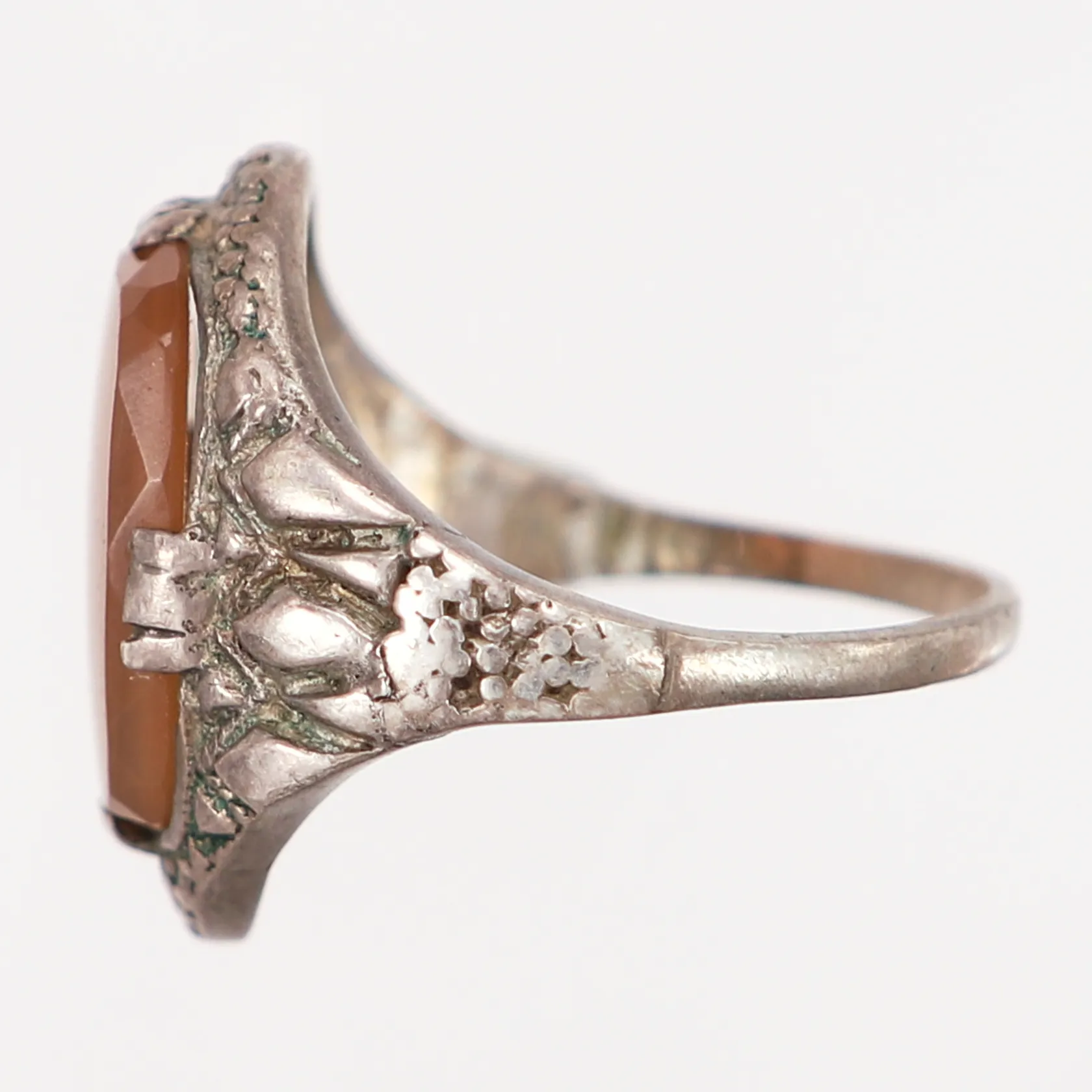 Ring med karneol, stl 18½, bredd 1-20mm, ostämplat silver Vikt: 6,6 g.