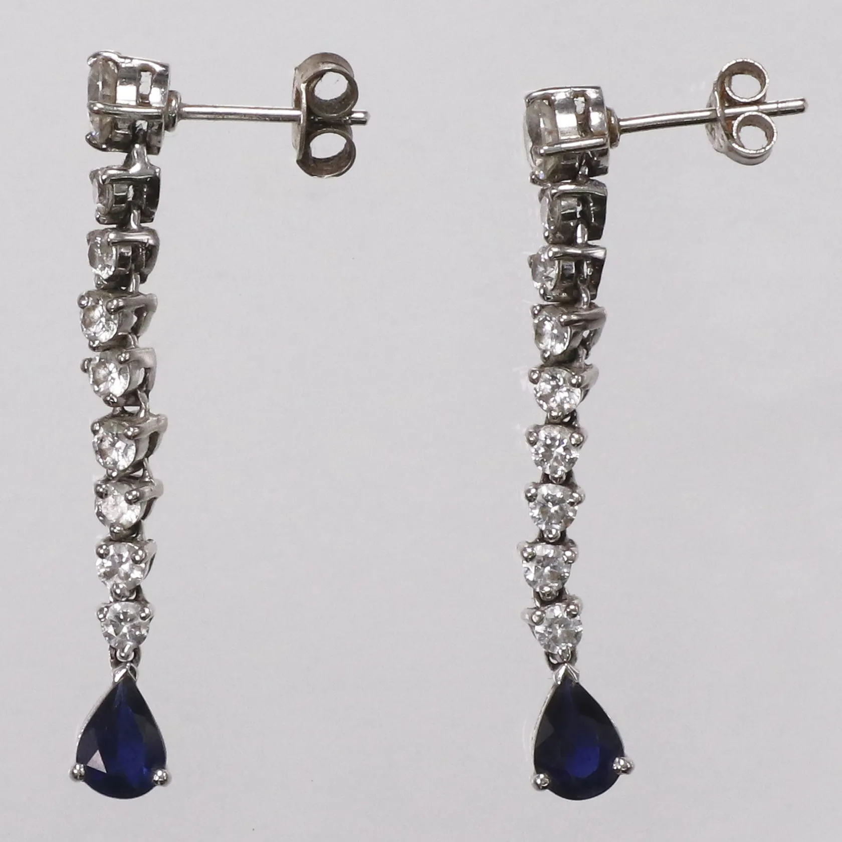 Ett par örhängen safirer vita stenar, 38mm, ett stopp i metall, ej med i vikt, vitguld, 18K Vikt: 5,2 g.