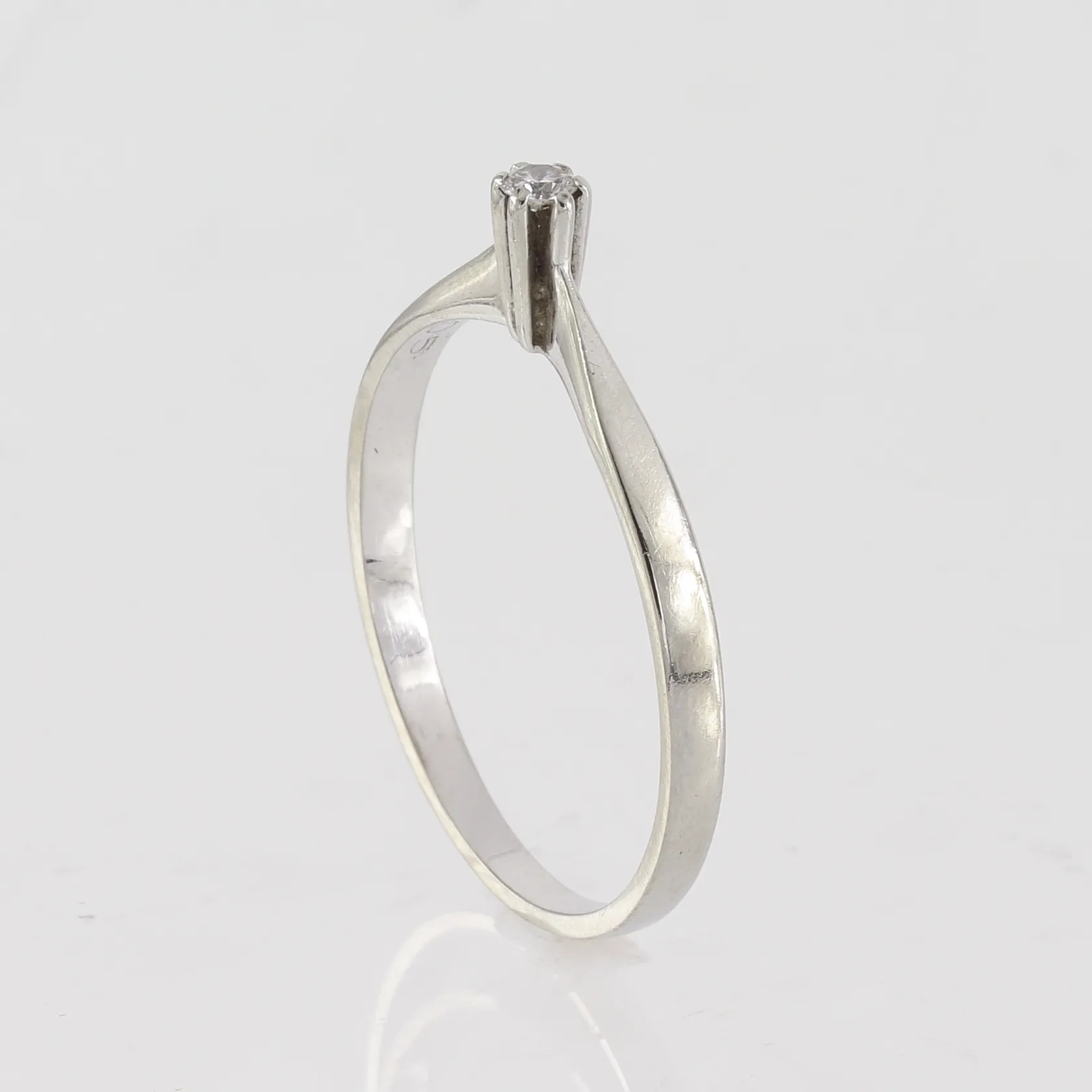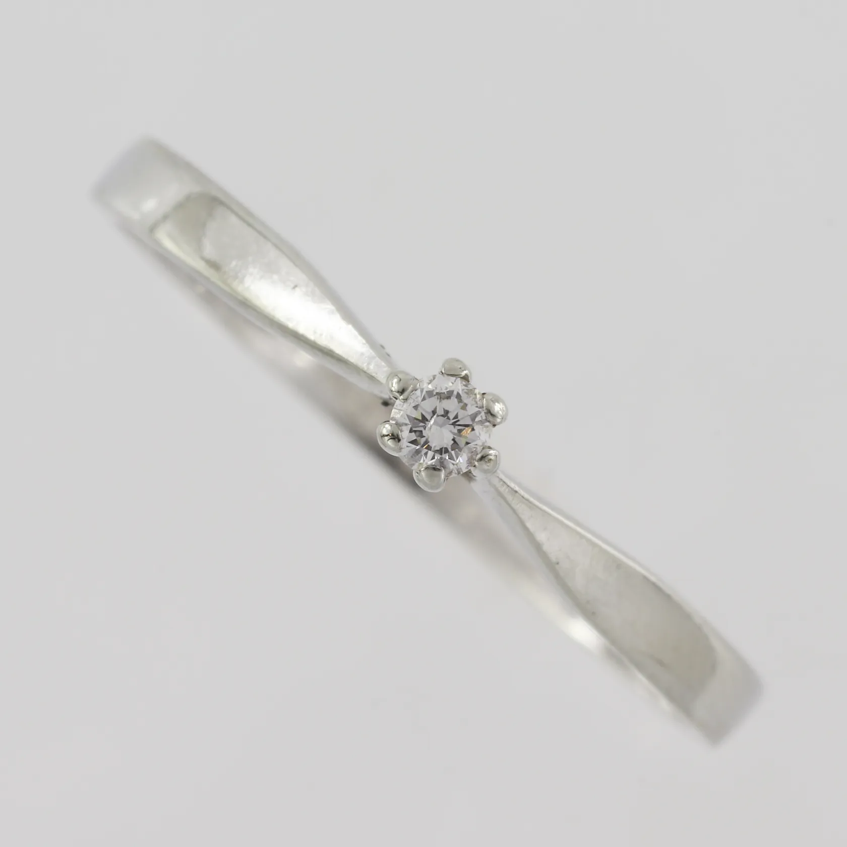 Ring med diamant 0,05ct enligt inskription, stl 18¾mm, bredd skena 1,7mm, 18k vitguld Vikt: 1,9 g.