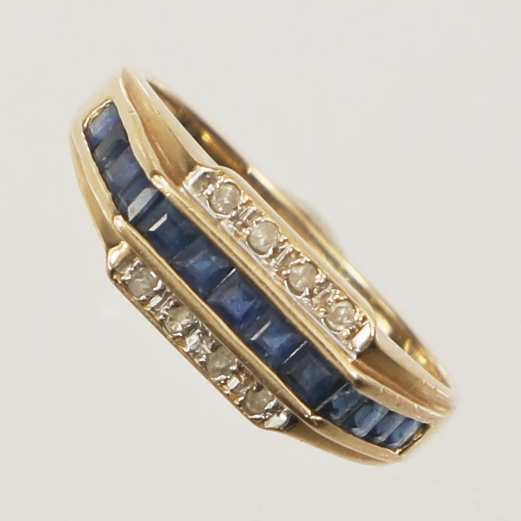 Ring med blå och vita stenar, stl 17¼, bredd 1,3-6,2mm, 14K Vikt: 2,3 g.
