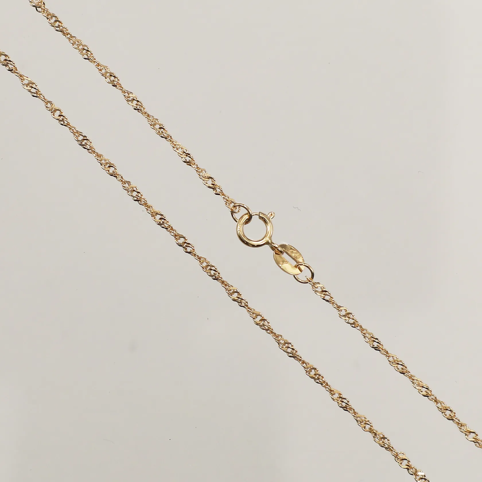Kedja Singapore, längd 44cm, bredd 0,9mm, 18K Vikt: 1,6 g.