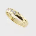Ring med diamanter 7st totalt 0,28ct enligt inskription, stl inte rund ca 15¼mm, bredd 3,4mm, Guldverksta'N I Jönköping Hb 2002, 18k Vikt: 3,3 g.