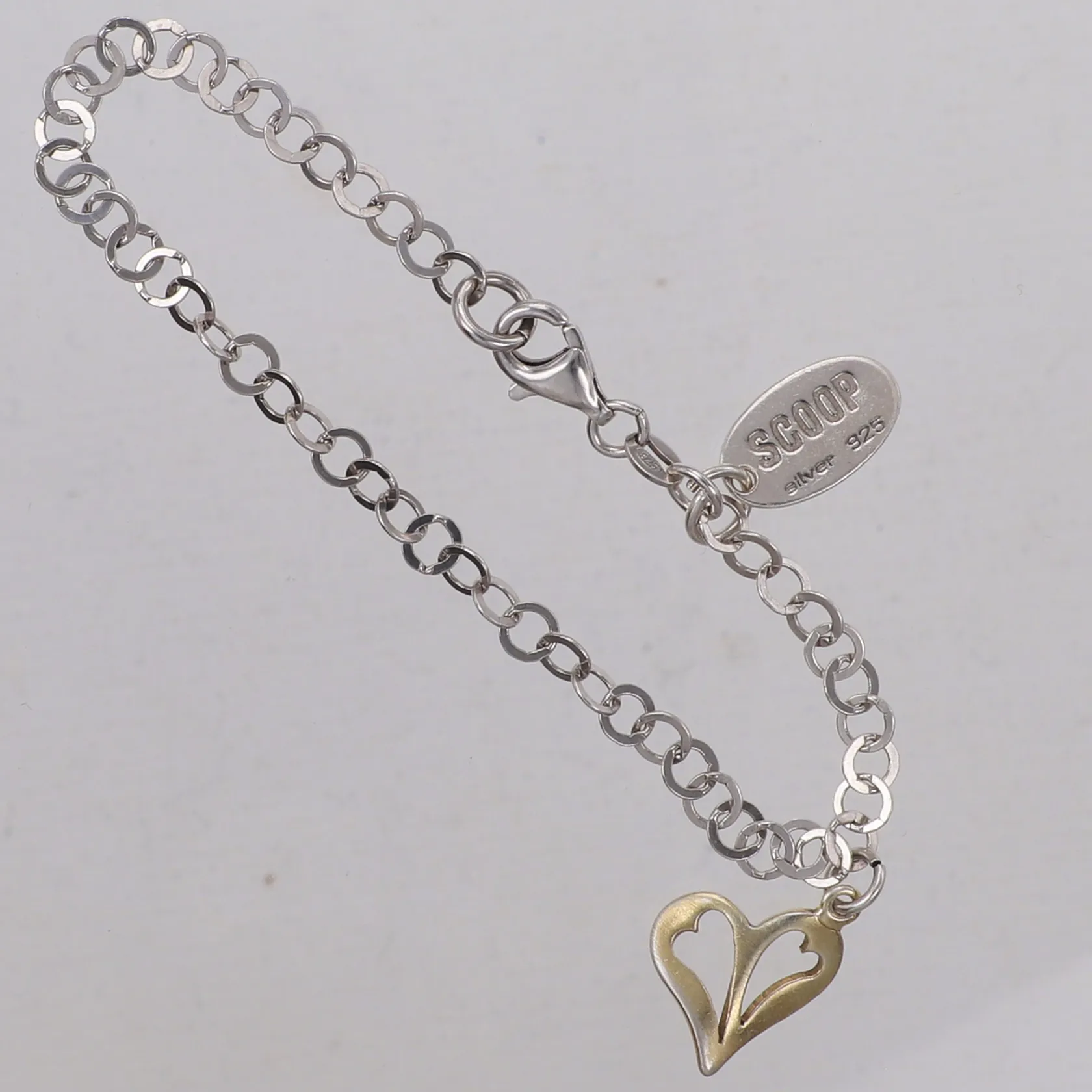 Armband, längd 18cm, bredd 3,9mm, med berlock, Scoop, 925/1000 silver Vikt: 4,7 g.