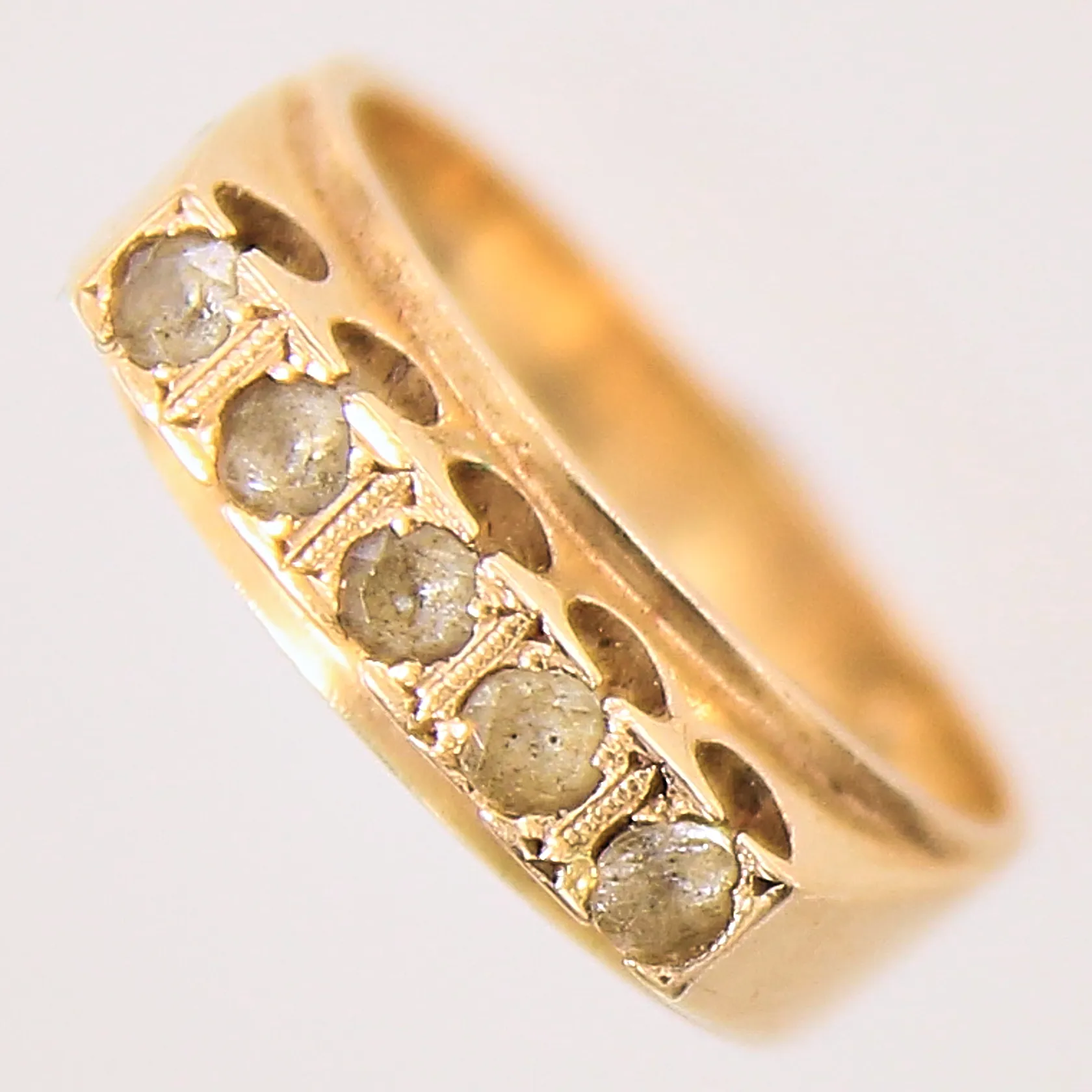 Ring med vita stenar, stl: 16, bredd: 3,9-5,7mm, 18K Vikt: 5,5 g.