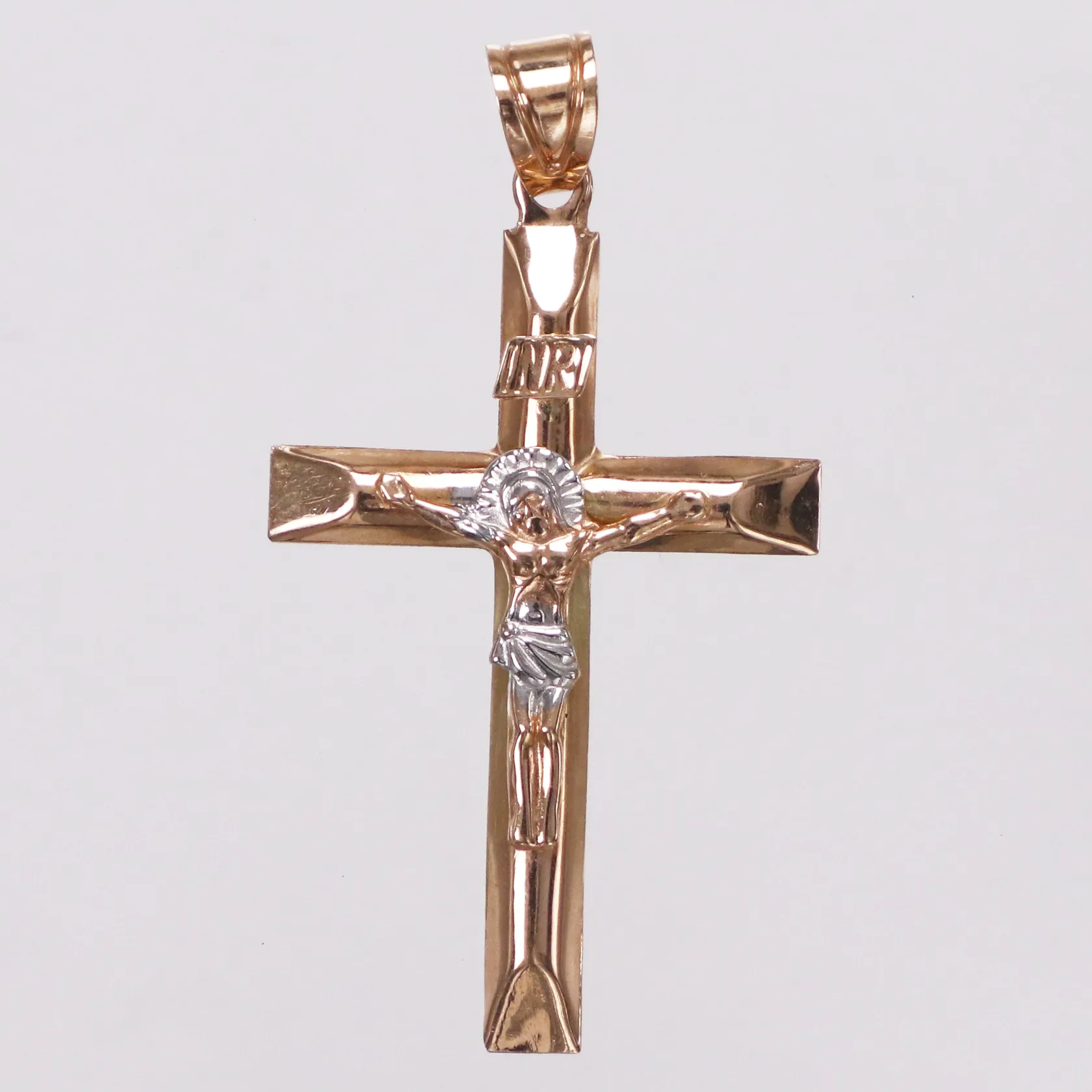 Hänge krucifix, 40mm, roséfärgad, vitguldsdetalj, 14K Vikt: 1 g.