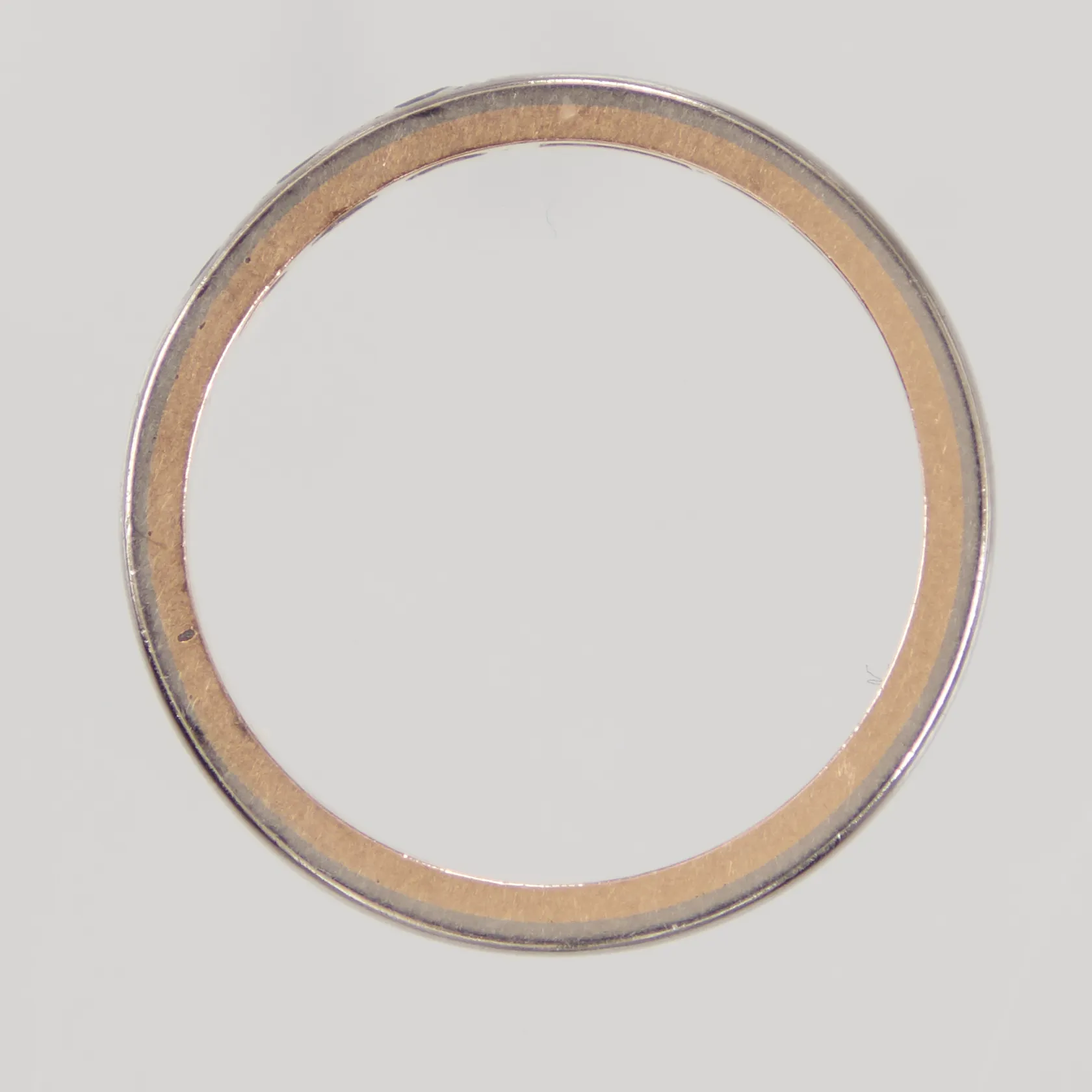 Ring stl 16½, bredd 2,6mm, åttkantslipade diamanter 3x ca 0,005ct, gravyr, insidan gulguld, vitguld, 18K Vikt: 3,4 g.