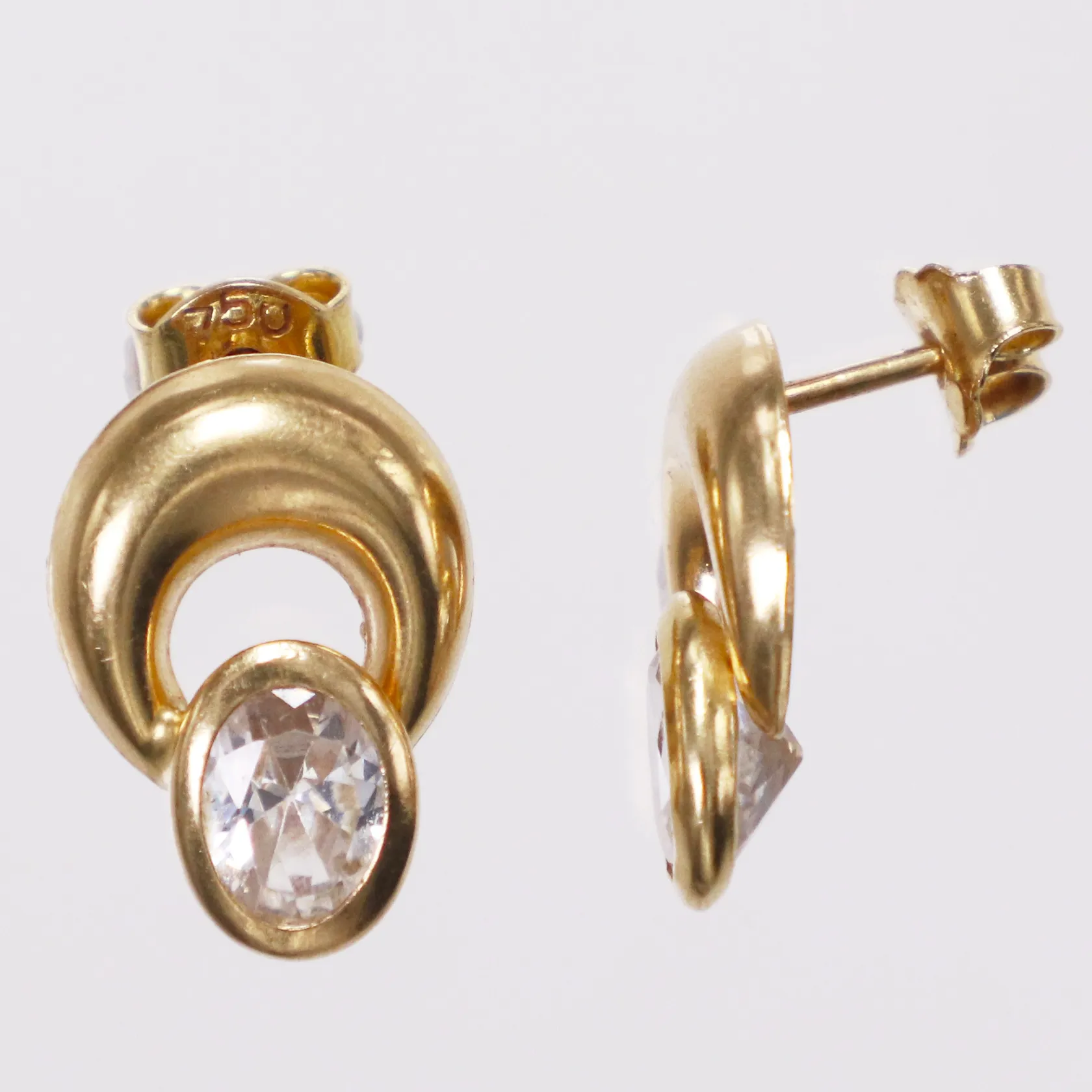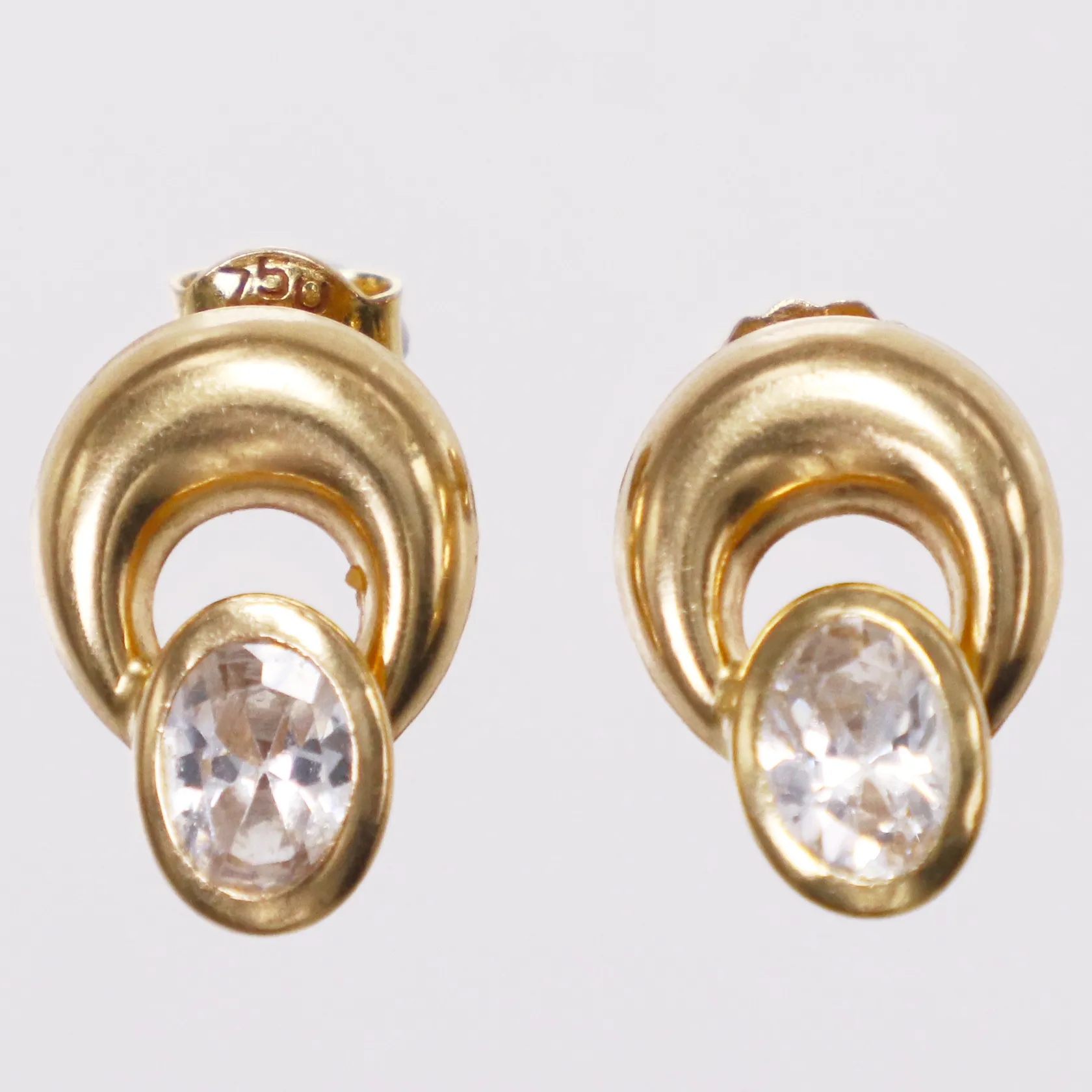 Ett par örhängen vita stenar, 17mm, omaka stoppar, 18K Vikt: 3,2 g.