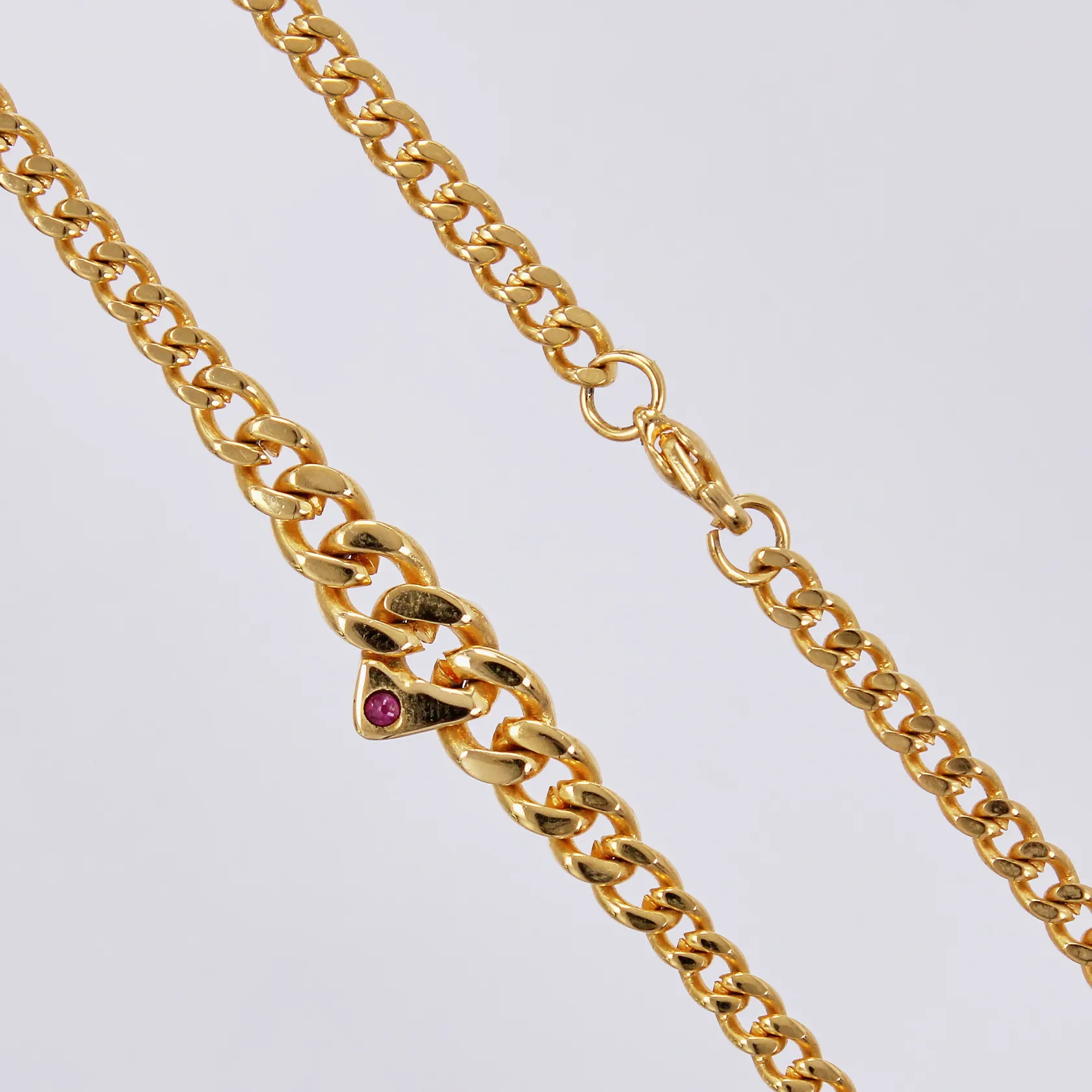 Collier med röd sten, längd: ca 41cm, bredd: ca 4-10mm, förgylld metall
