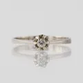 Ring vitguld med solitär diamant på 0,07 ct enligt inskription, storlek 16 ½ mm, bredd 2,2-4,7 mm, 18 k. Vikt: 1,6 g.