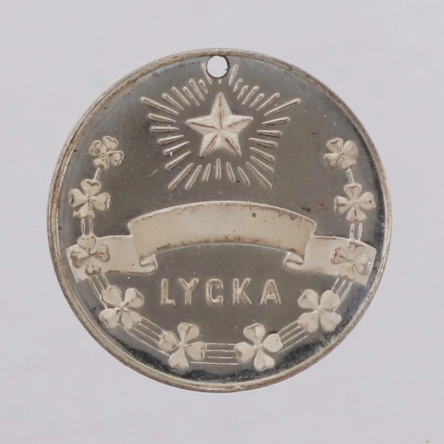 Hänge, lyckoklöver, Ø 20mm, Sporrong, silver Vikt: 5,5 g.