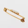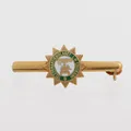 Nålmärke "Telefonaktiebolaget LM Ericsson", längd 3 cm, förgyllt silver. Vikt: 2,7 g.