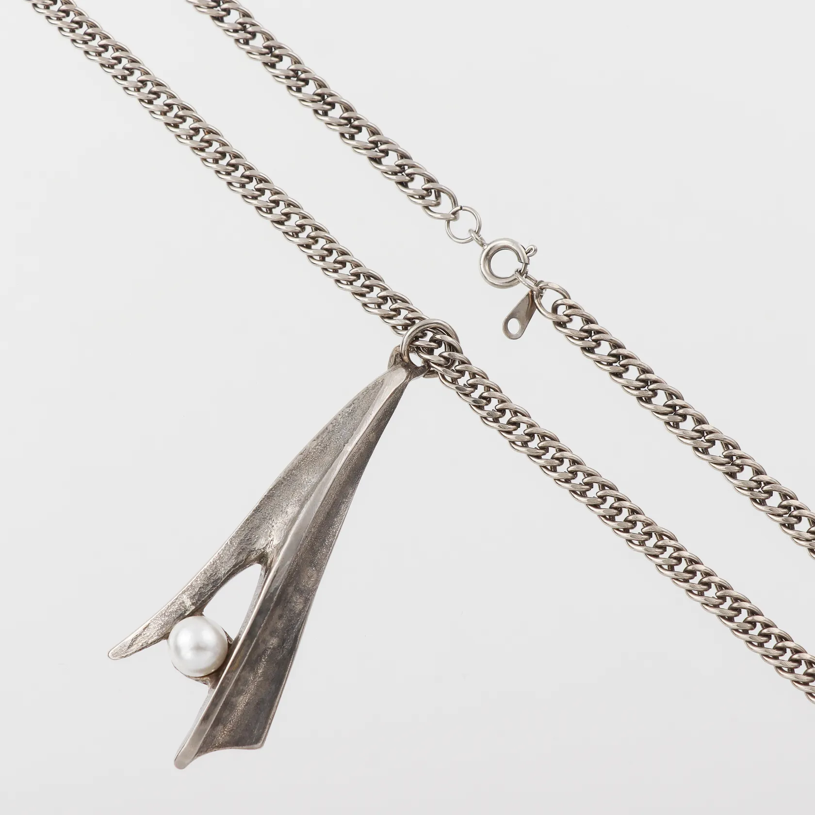 Collier med hänge, hänget stämplat, kedjans längd 37 cm, hängets 7 cm, vitmetall.