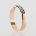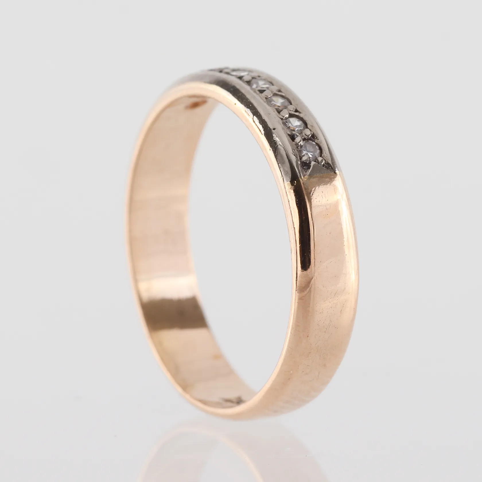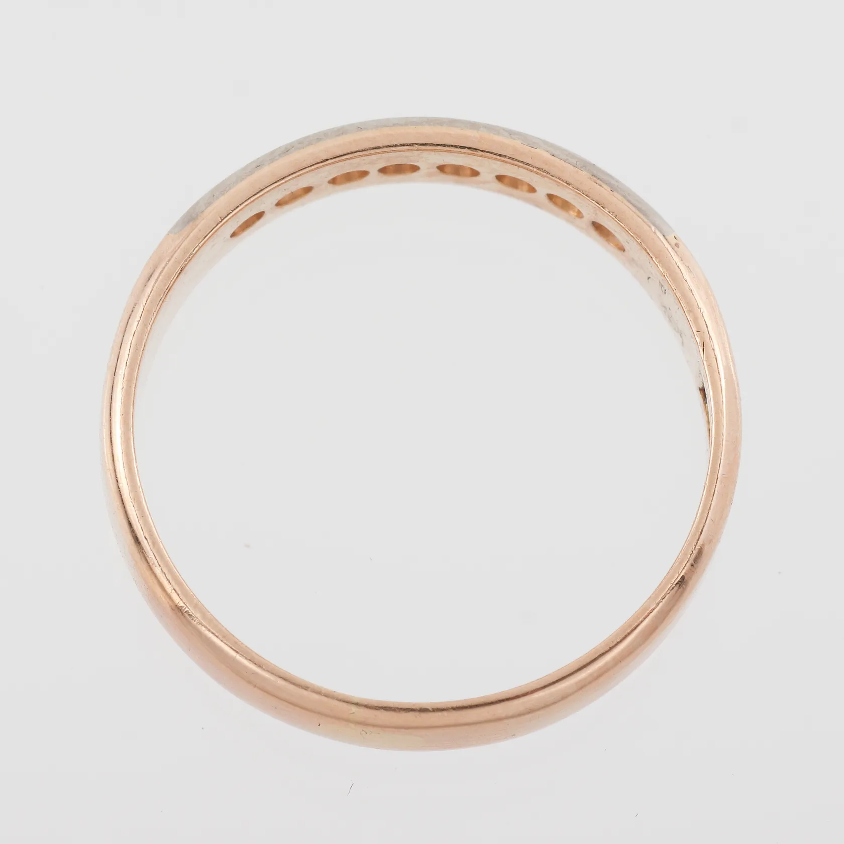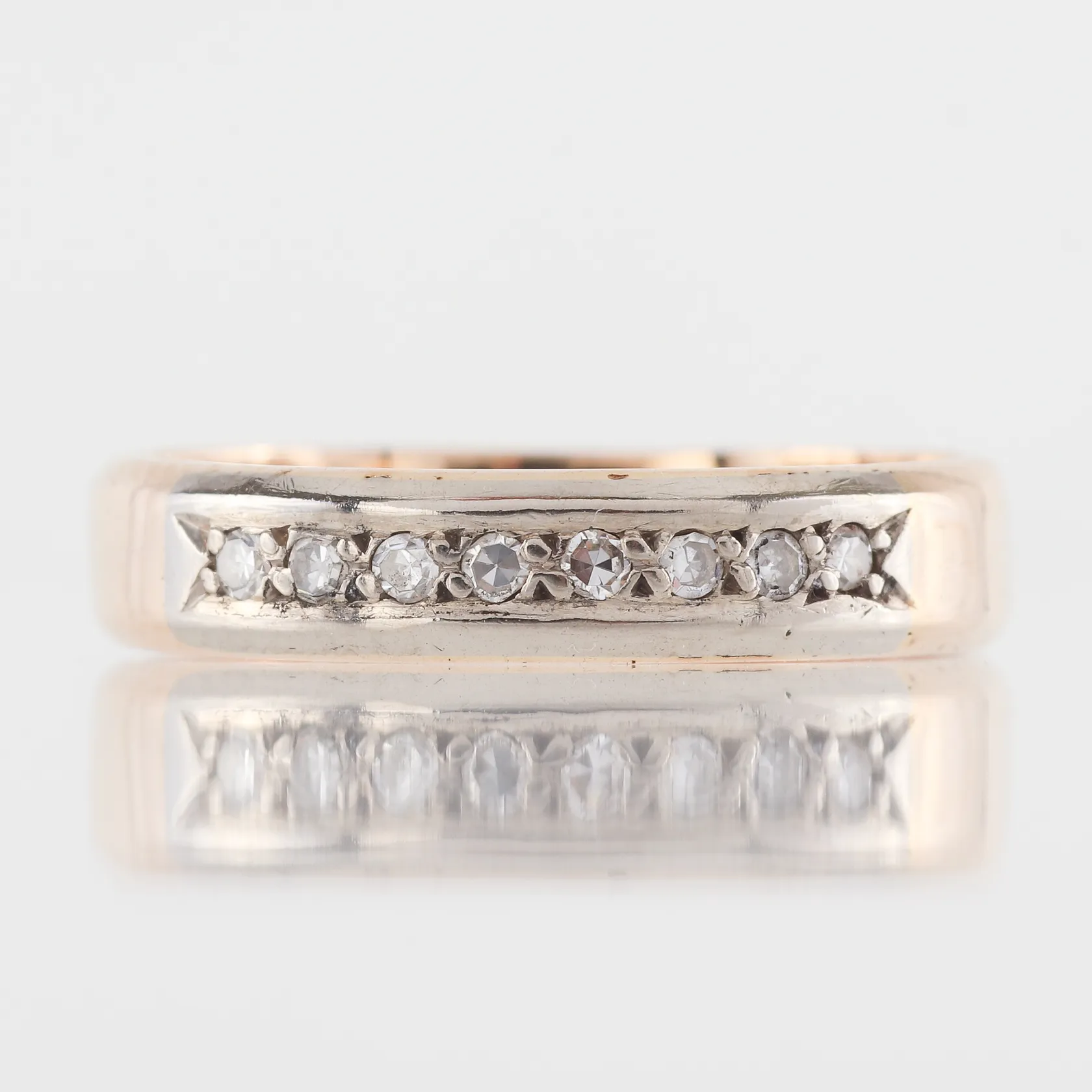 Ring med 9 st diamanter på totalt 0.10 ct enligt gravyr, CESON Göteborg 1973, storlek 17 mm, bredd 3.9 mm, 18 k. Vikt: 3,1 g.