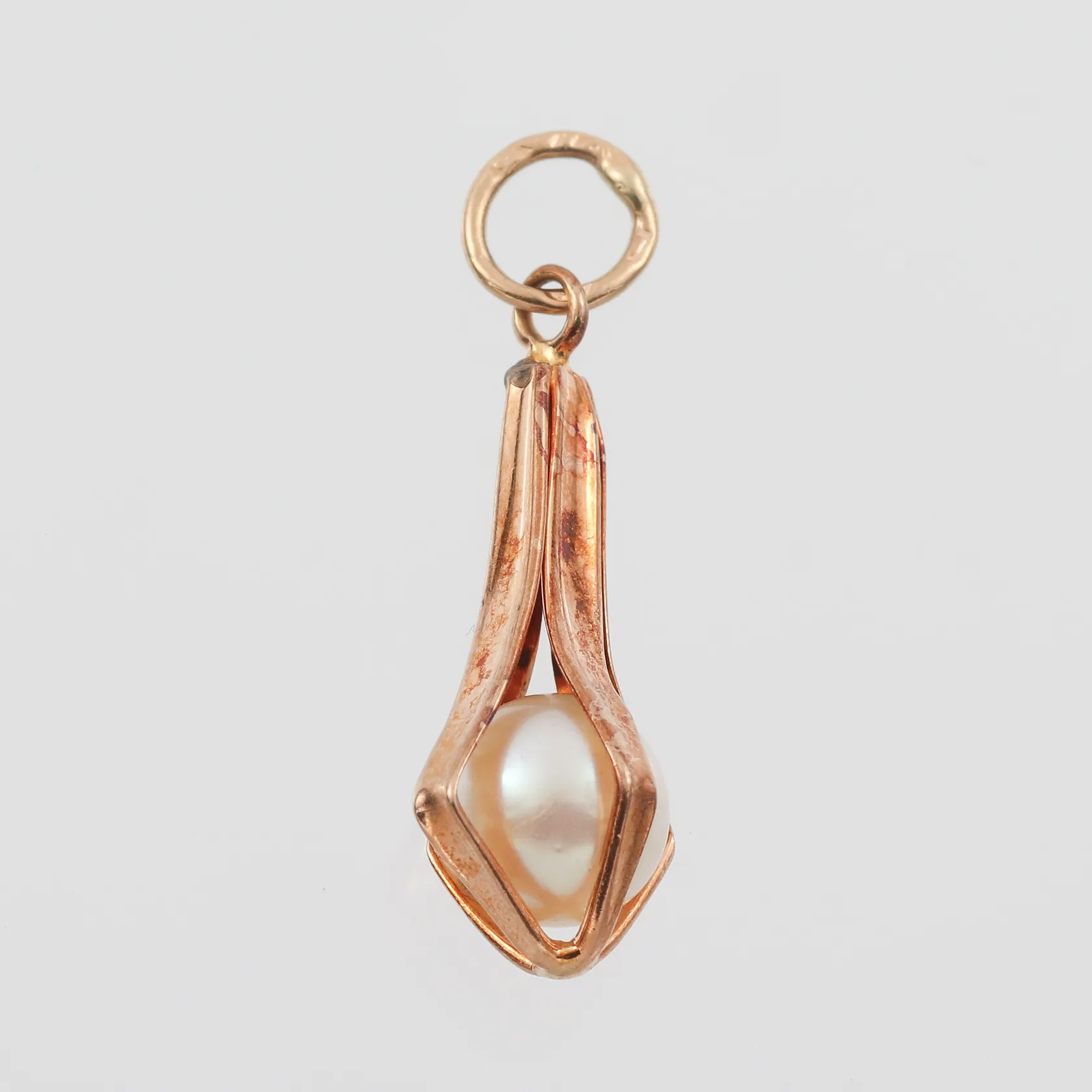 Berlock med pärla, höjd ca 14,k5mm, 18k Vikt: 0,7 g.