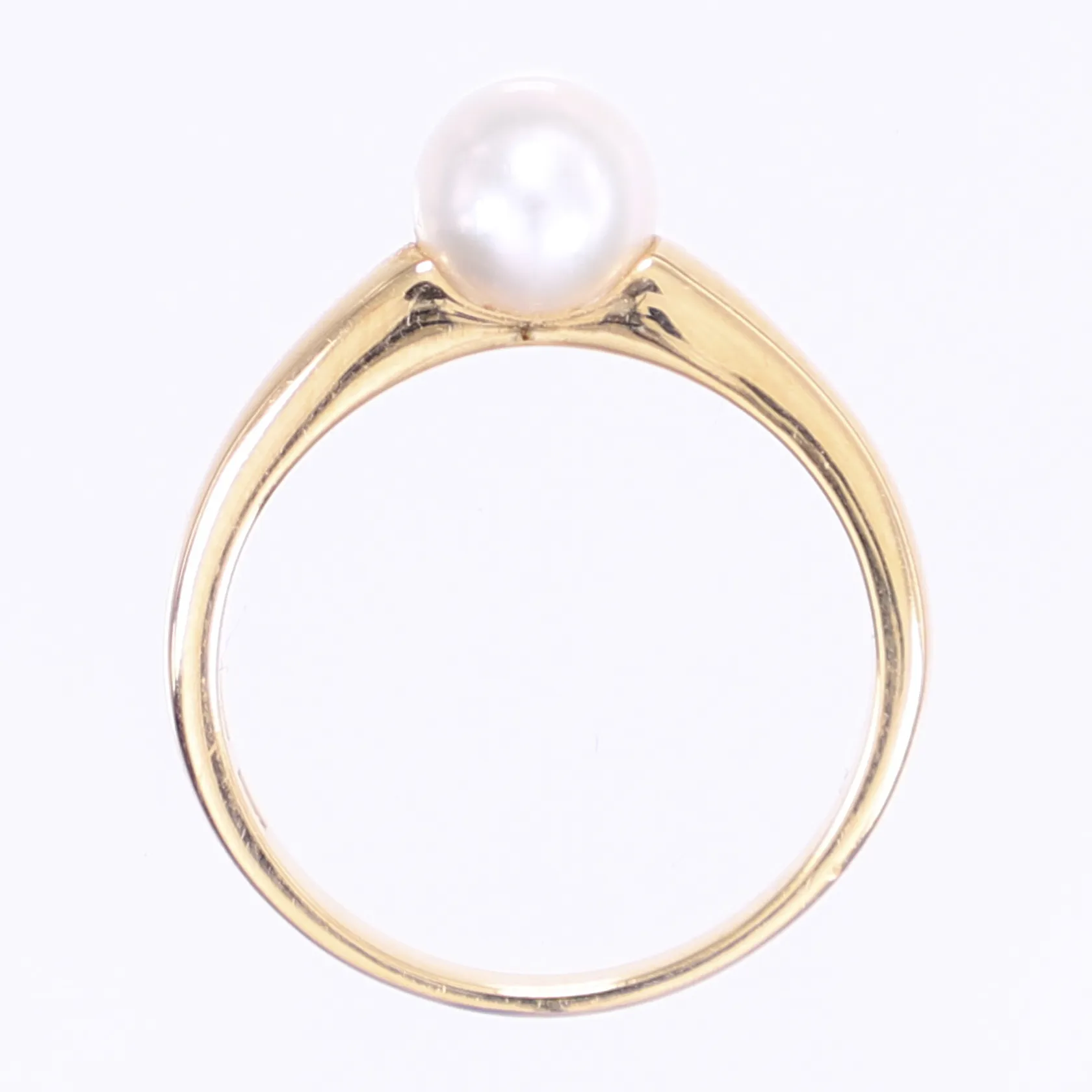 Ring med imitationspärla, stl 16¾, bredd 2-6mm, 18K, Bruttovikt: 2,9g Vikt: 2,9 g.