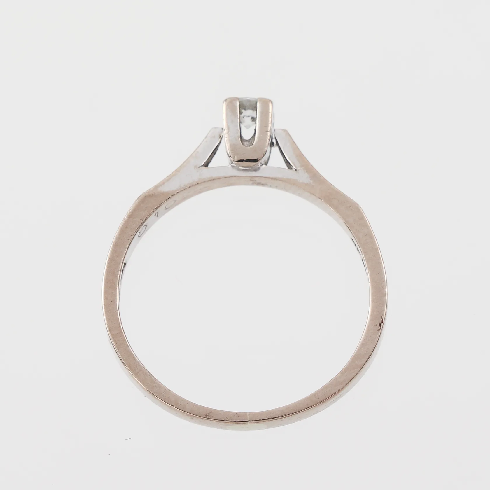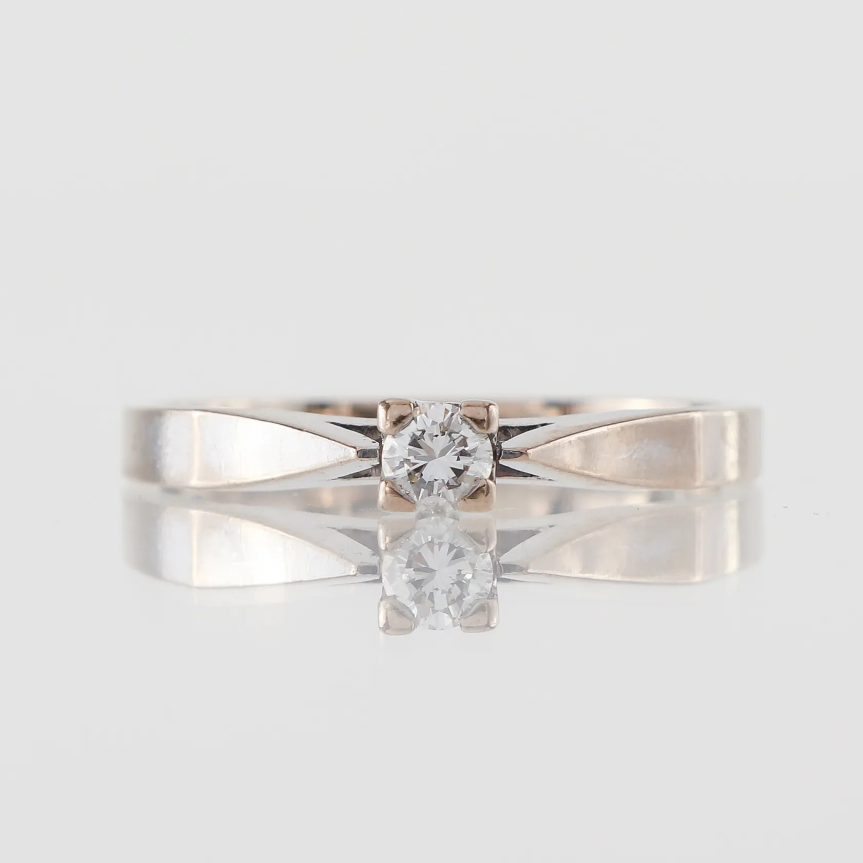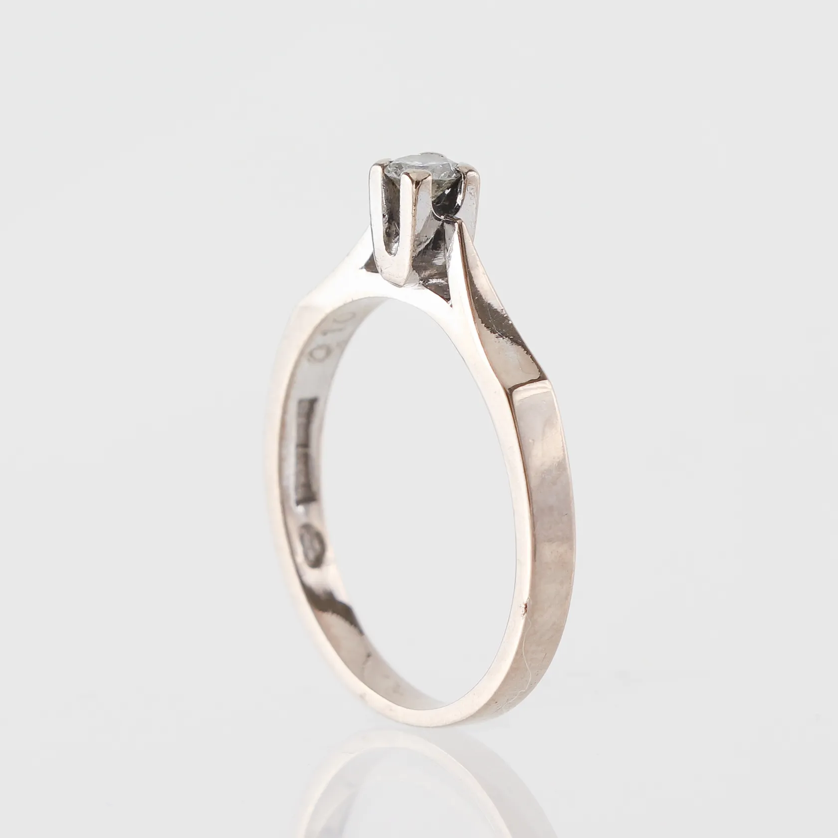 Enstensring Spectra vitguld med diamant på 0.10 ct enligt inskription, Gustav Dahlgren & Co Malmö, storlek 16 ½ mm, bredd 1.9-3.5 mm, 18k. Vikt: 3 g.