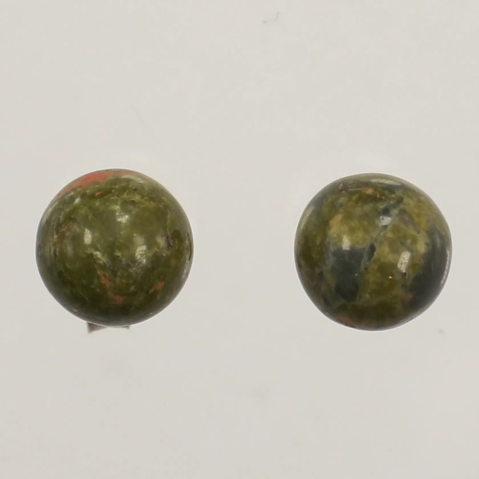 Ett par örhängen med stenar unakit, Ø 8mm, omaka snurrebussar, 925/1000 silver Vikt: 2,3 g.