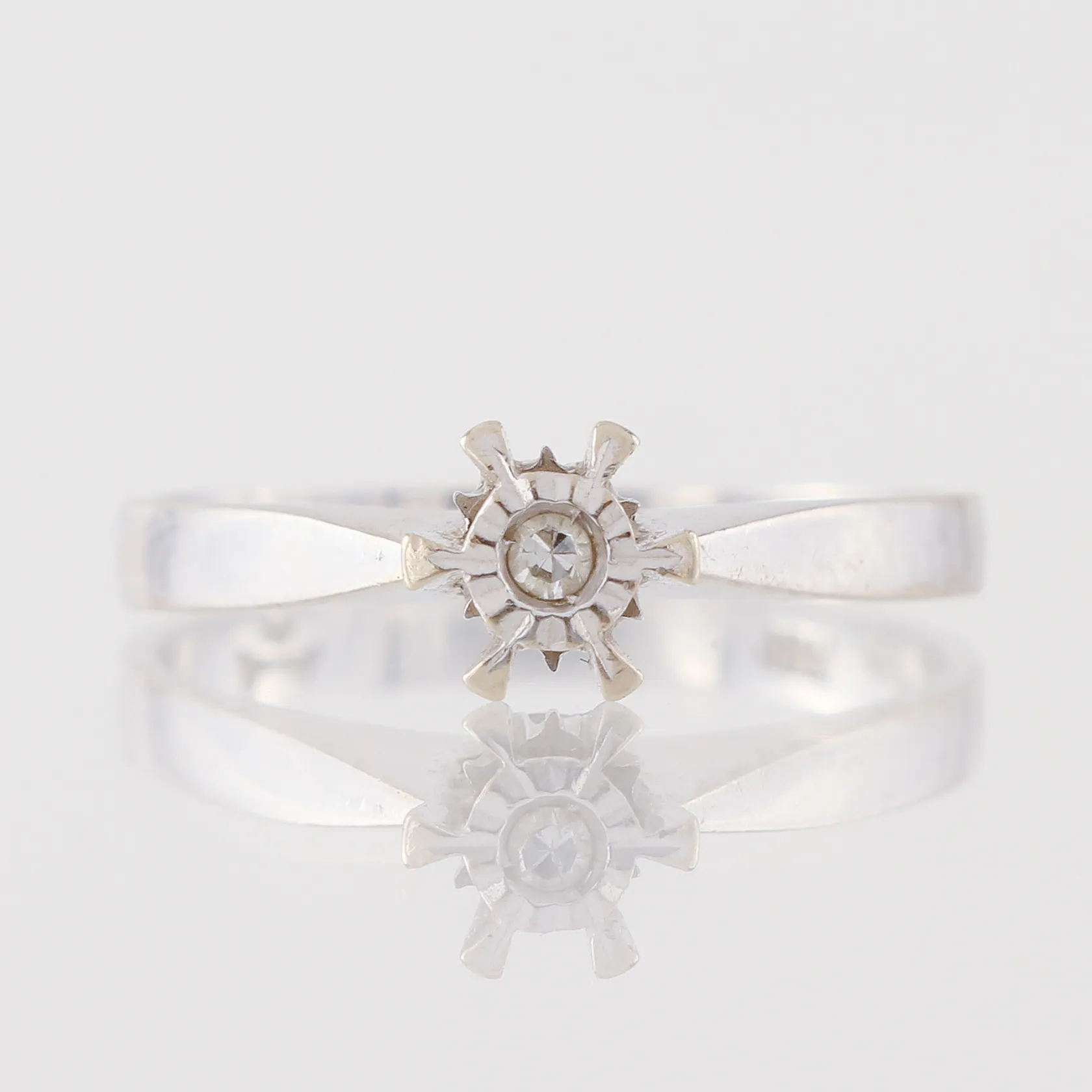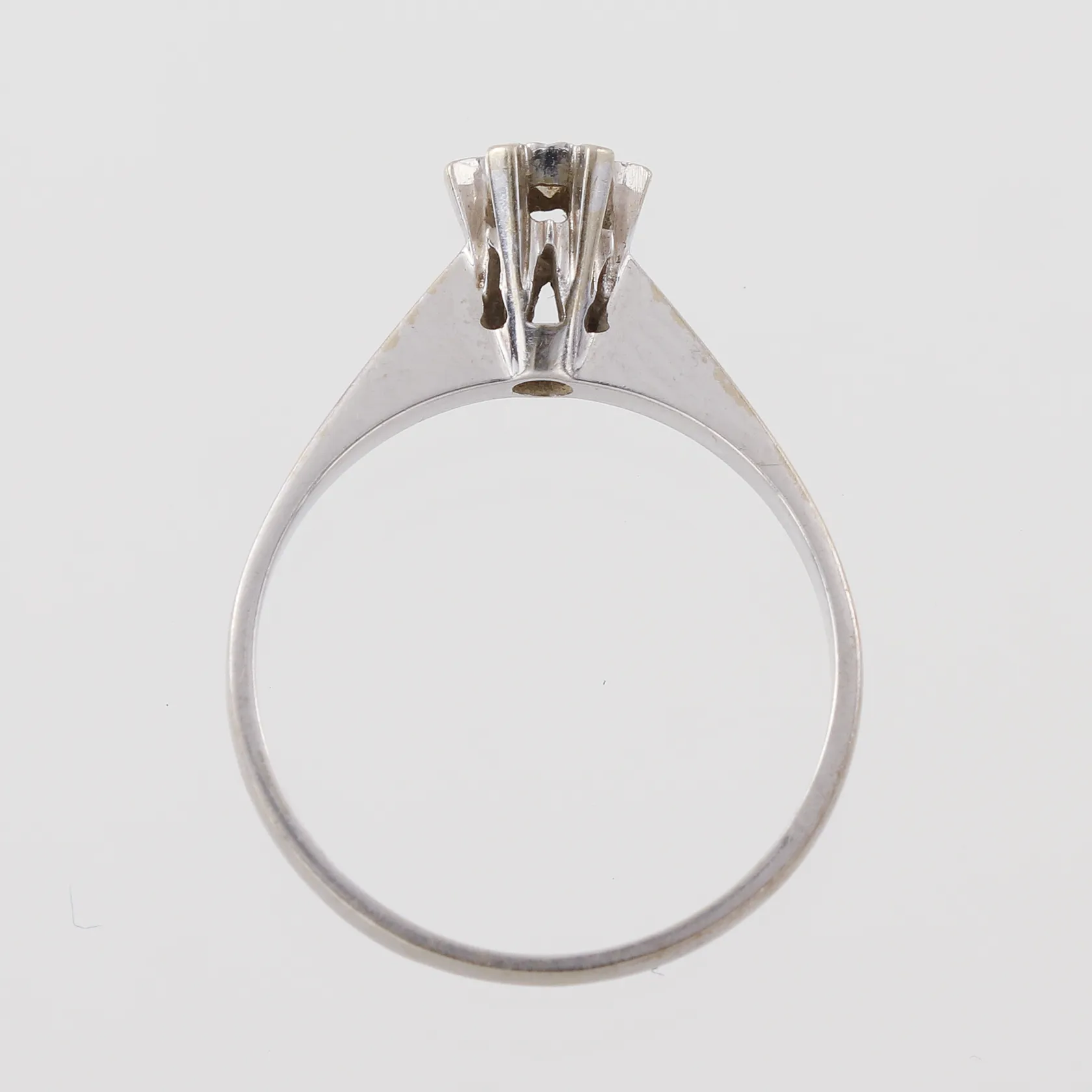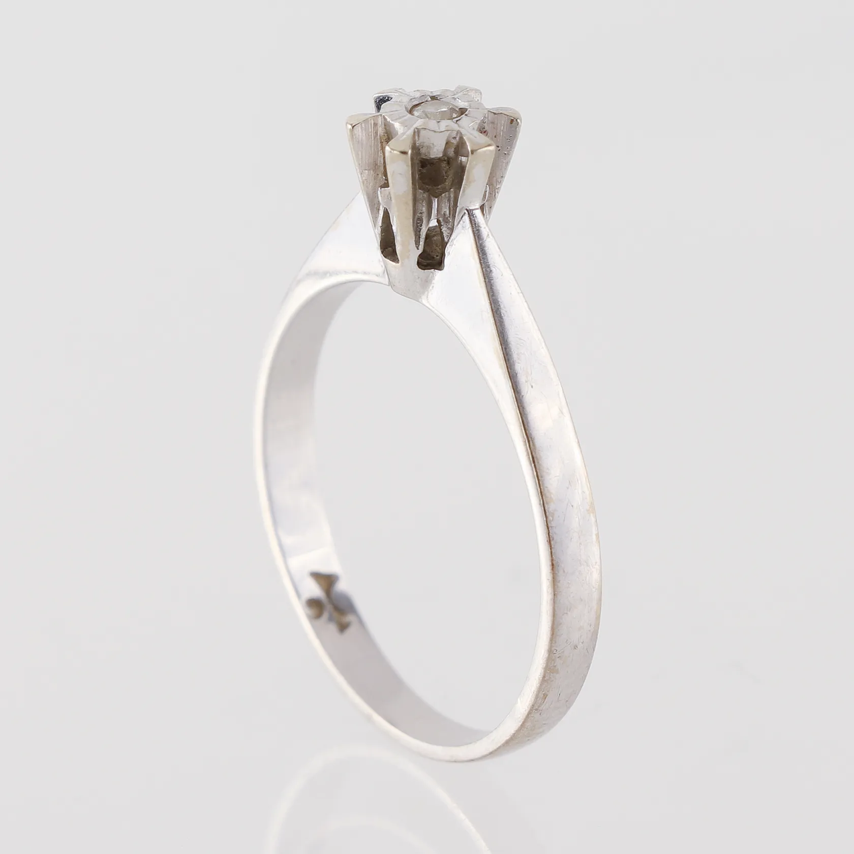 Ring vitguld med diamant ca 0,03ct, storlek 16 ½ mm, bredd 2.1-5.7 mm, 18k. Vikt: 2,4 g.