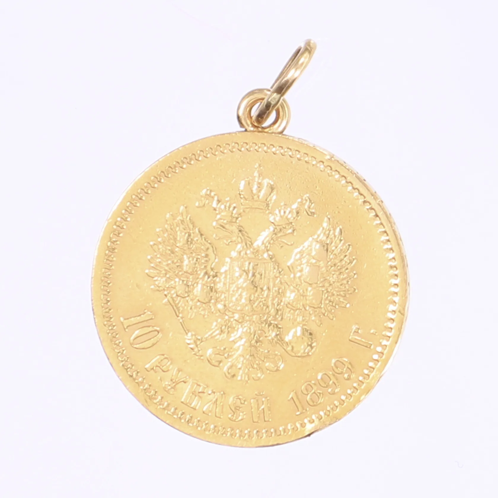 Hänge mynt 10 Rubel Nicholas II Kejsardömet Ryssland 1899 31x22mm ögla 18K mynt 21,6K Vikt: 8,9 g.