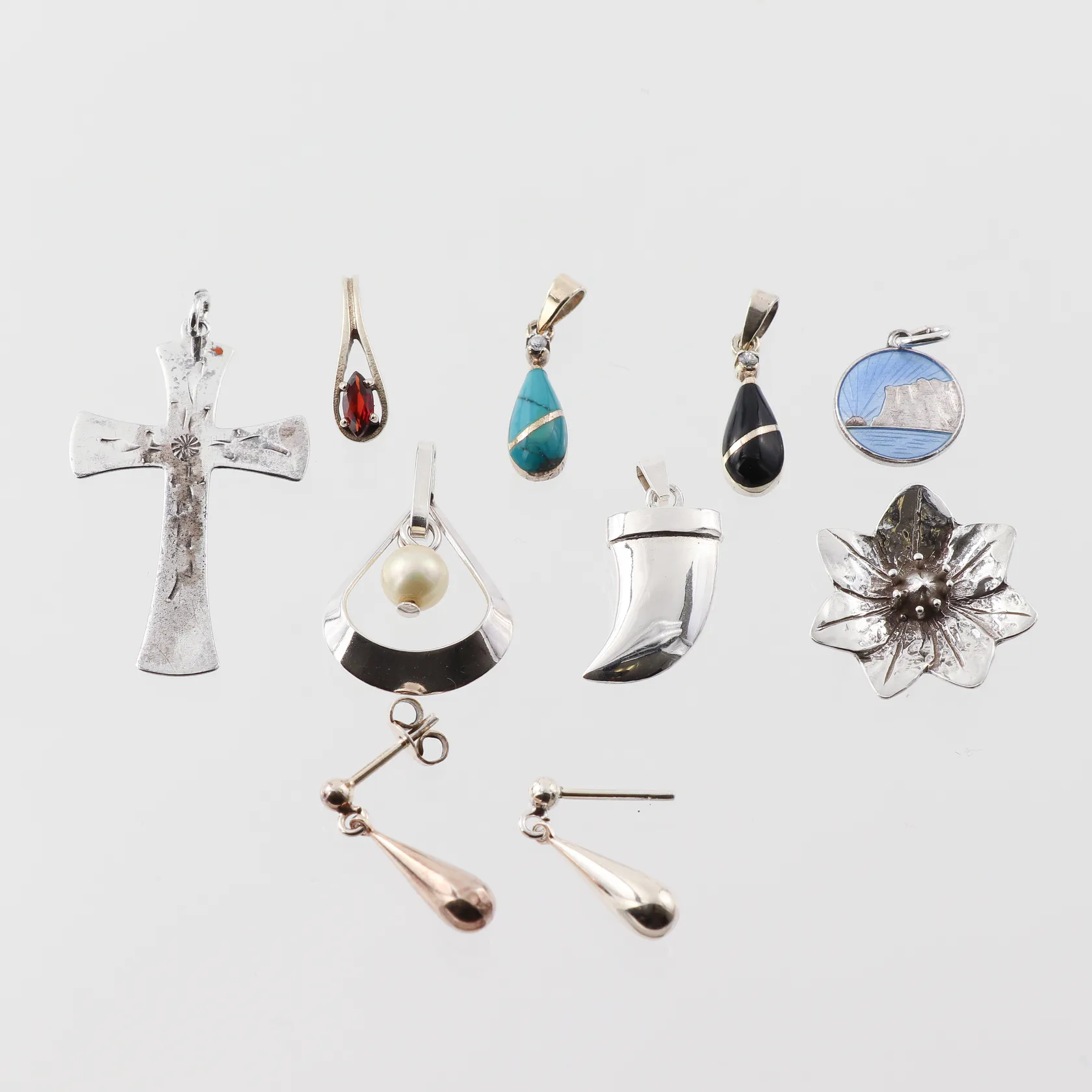 Hängen 8st + parörhängen droppar med endast ett lås, silver Vikt: 14,7 g.
