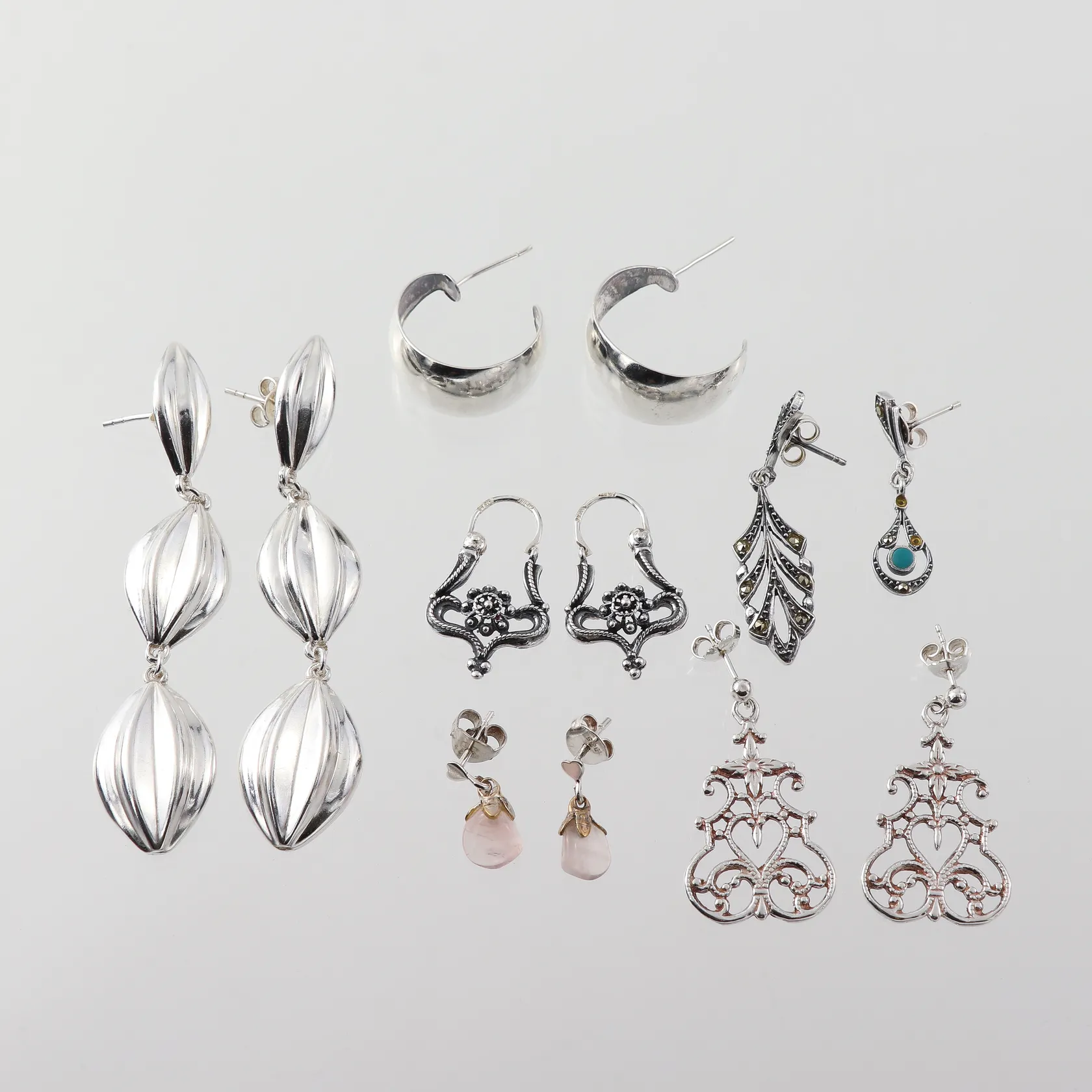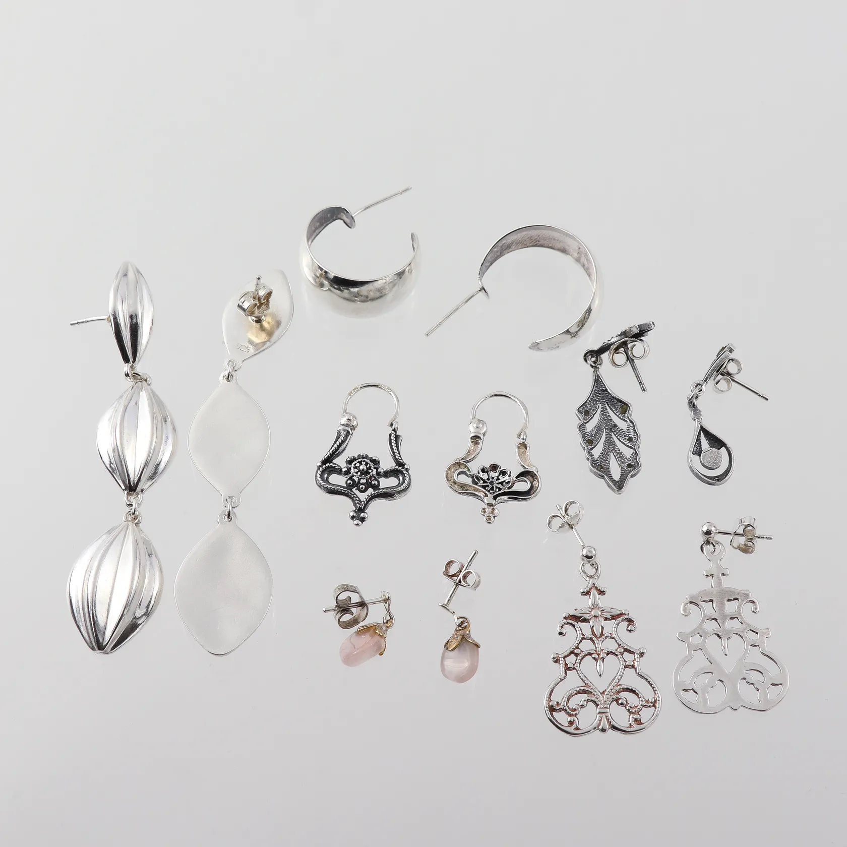Örhängen 5st par + 2st udda , silver Vikt: 26,8 g.