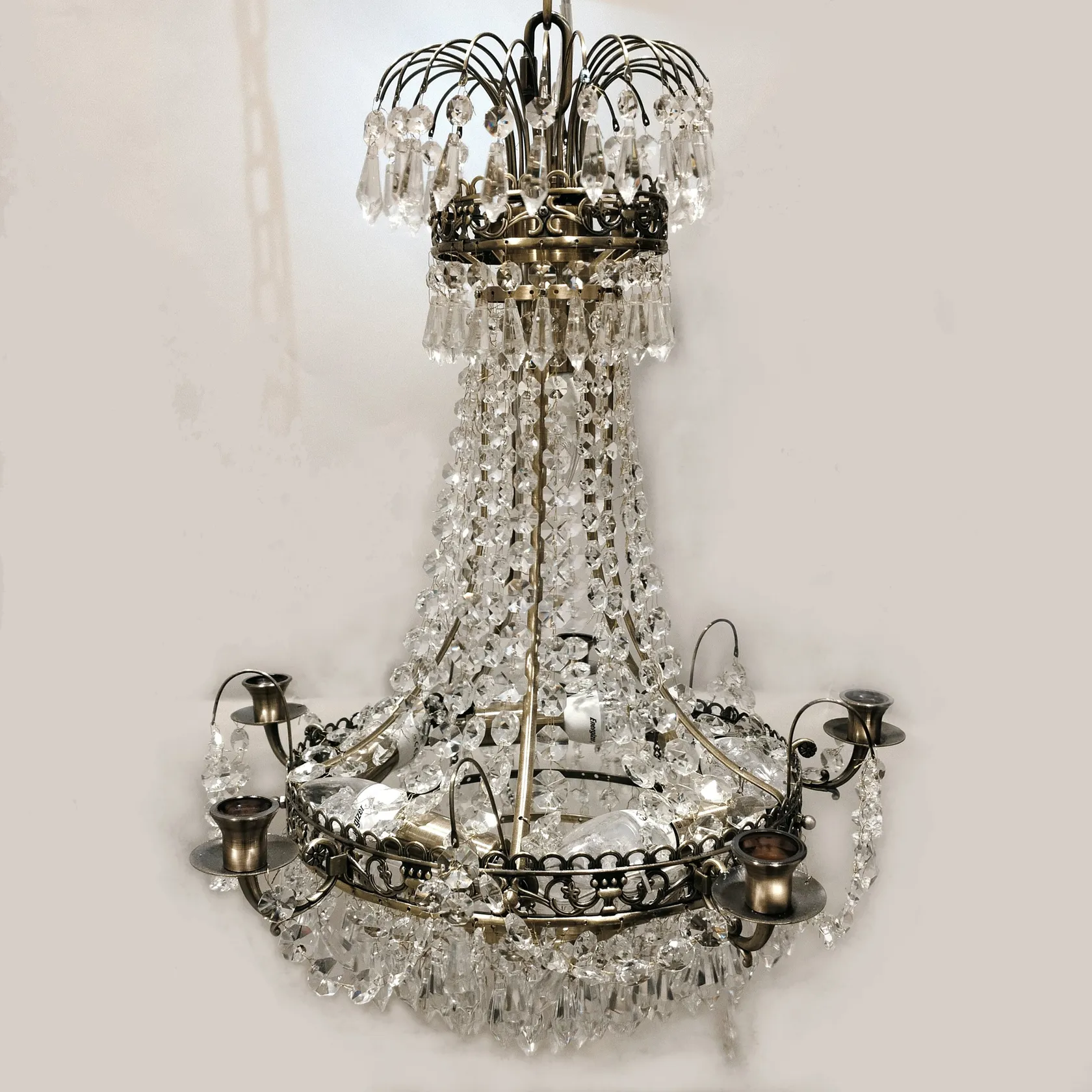 Kristallkrona, Markslöjd, Läckö 6 L, höjd ca 58 cm, diameter 48 cm, en lös rad med prismor, ej testad