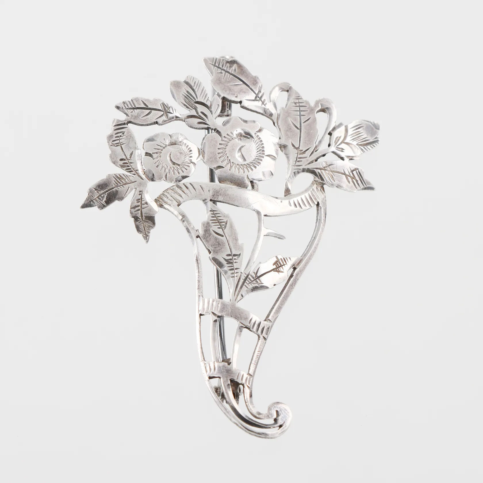 Brosch "blomma", längd 5cm, silver 835/1000 Vikt: 4,4 g.