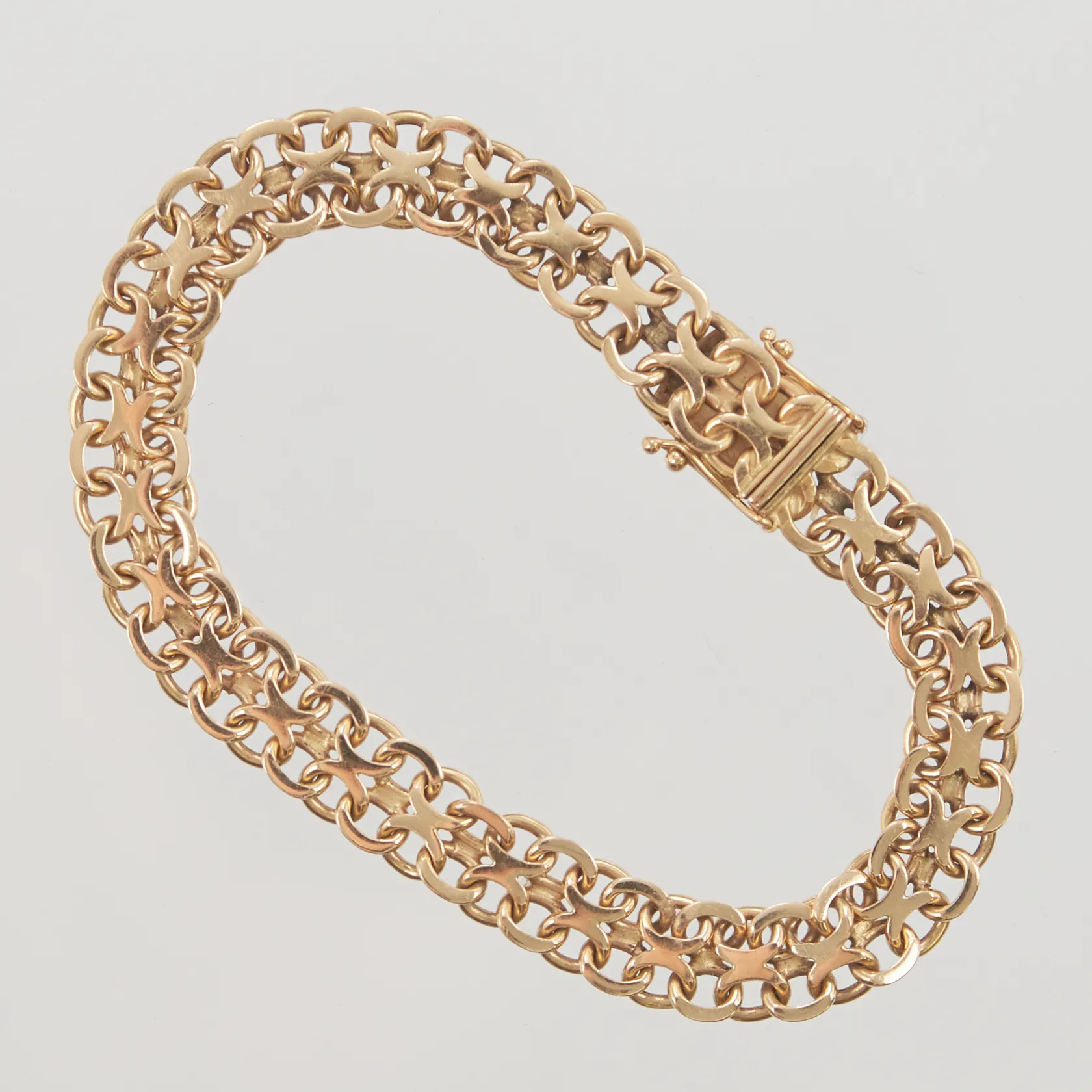 Armband, x-länk, 20cm, bredd: 9,3mm, 18K, 24,6g. Vikt: 24,6 g.