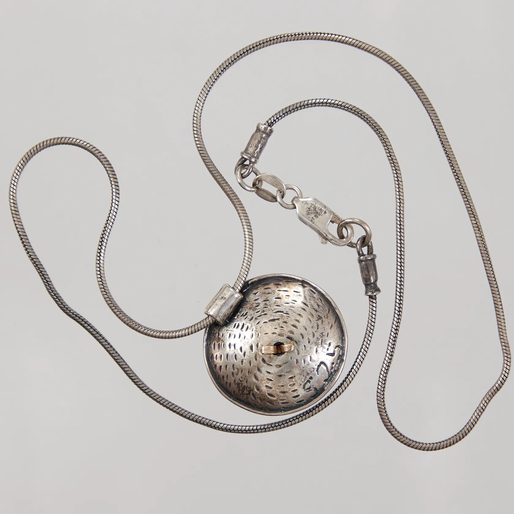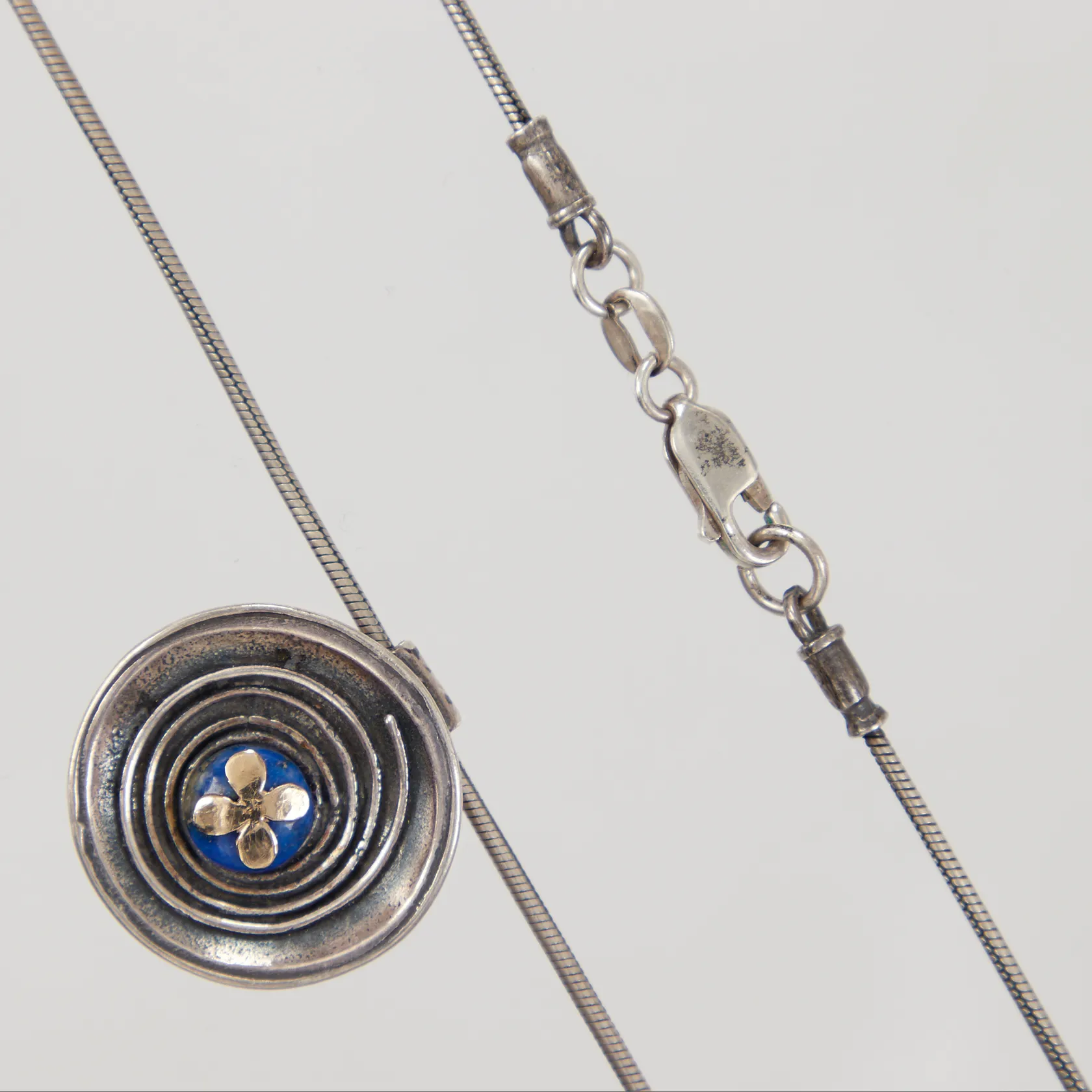Kedja Ormlänk 43cm, hänge med blå sten samt guldfärgad detalj, Ø ca 25mm, 925/1000 silver Vikt: 11,4 g.