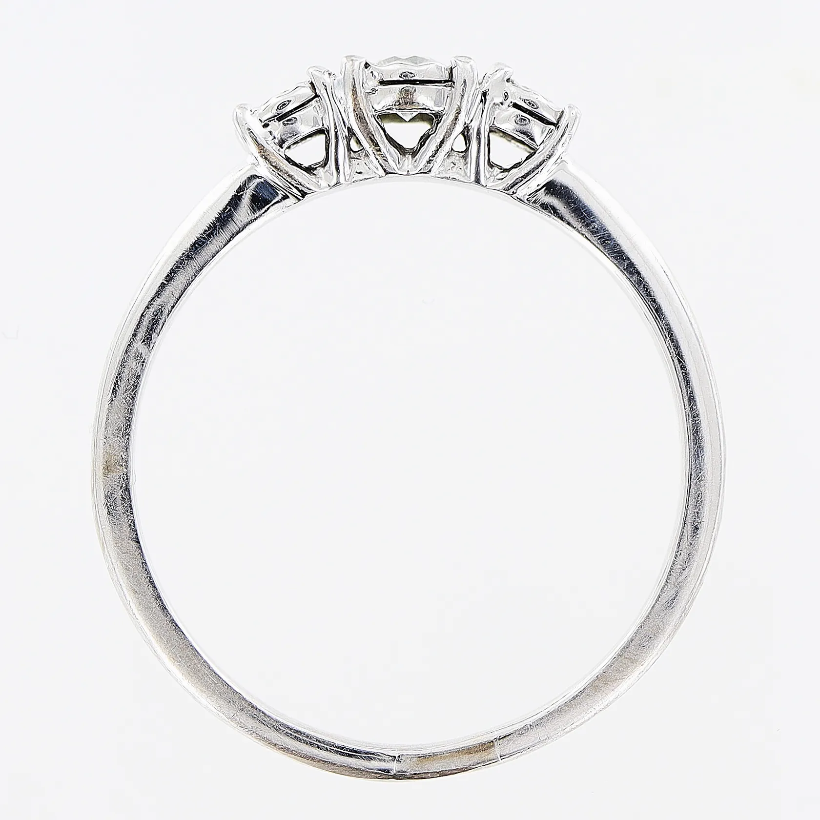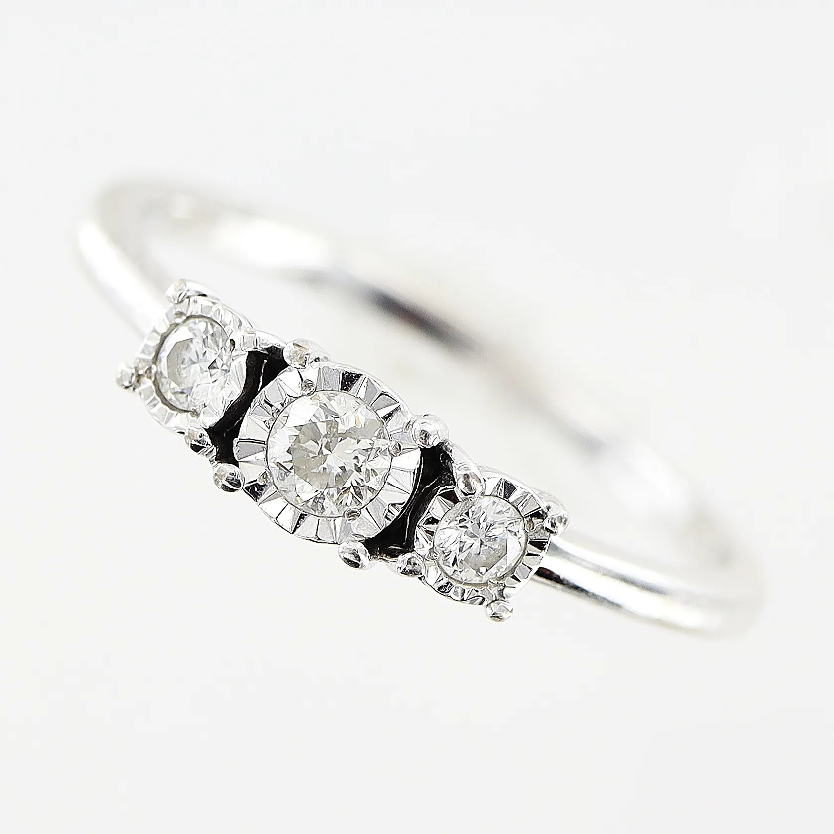Ring, diamanter 1 x ca 0,10, 2 x ca 0,03ct, stl 18, bredd 1-4mm, vitguld, GHA, 18K. Vikt: 2,6 g.