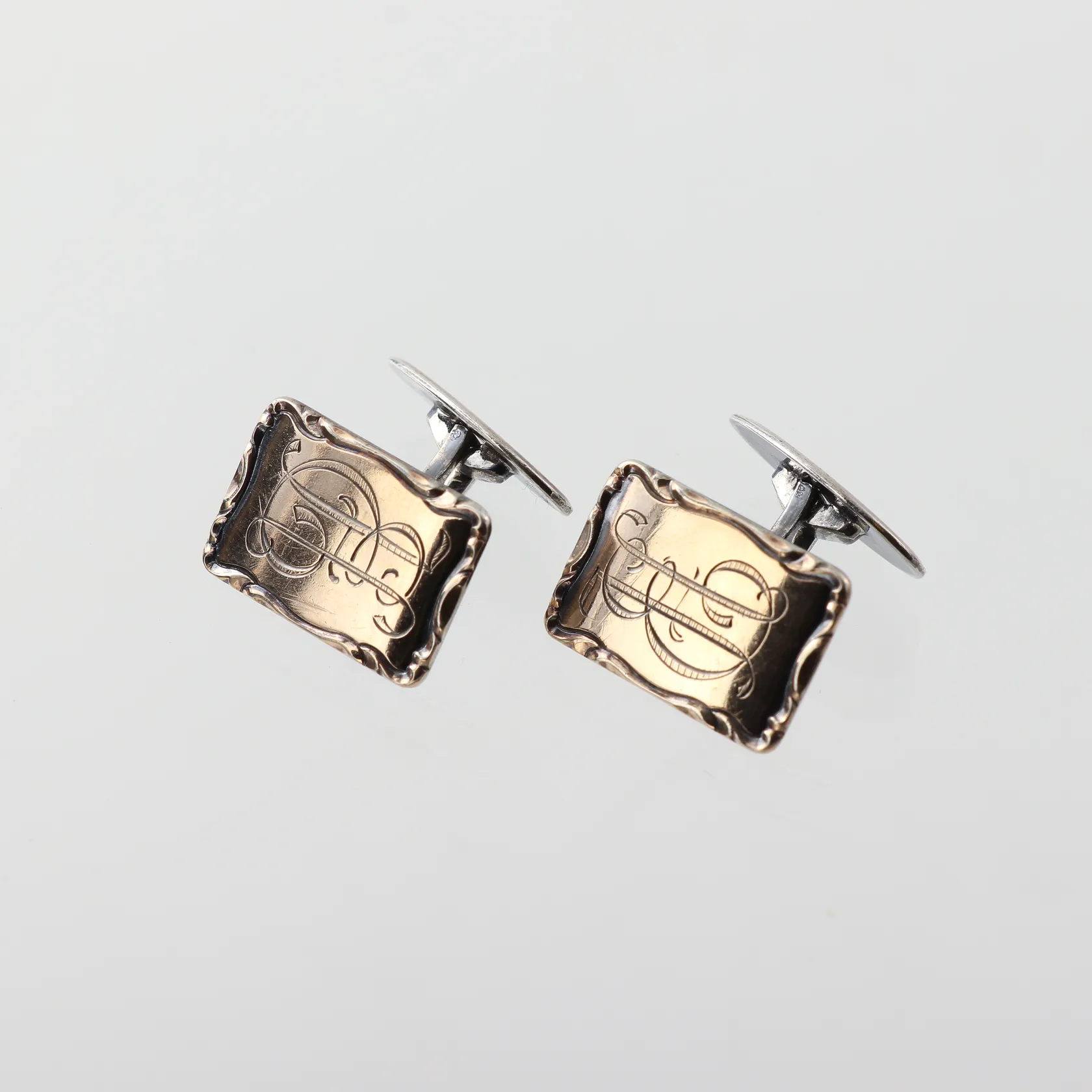 Parmanschettknappar, ca 18,5x12,8mm, monogram, silver 835/1000 Vikt: 8,4 g.