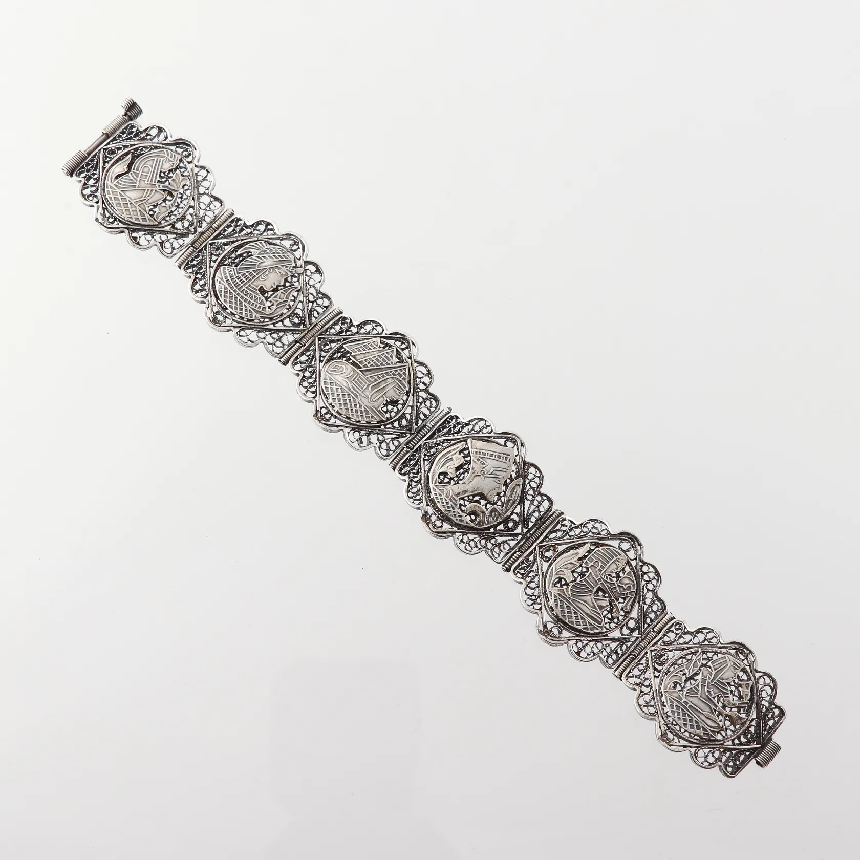 Armband silver, filigranarbete, längd ca 17 cm, bredd 24 mm, silver ostämplat Vikt: 30 g.