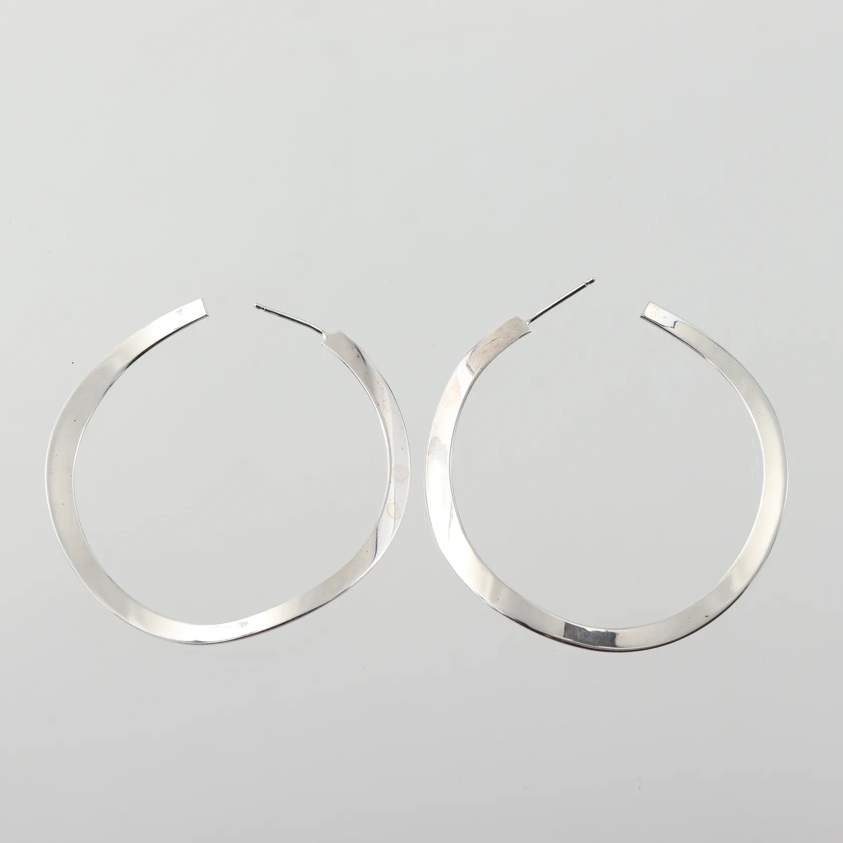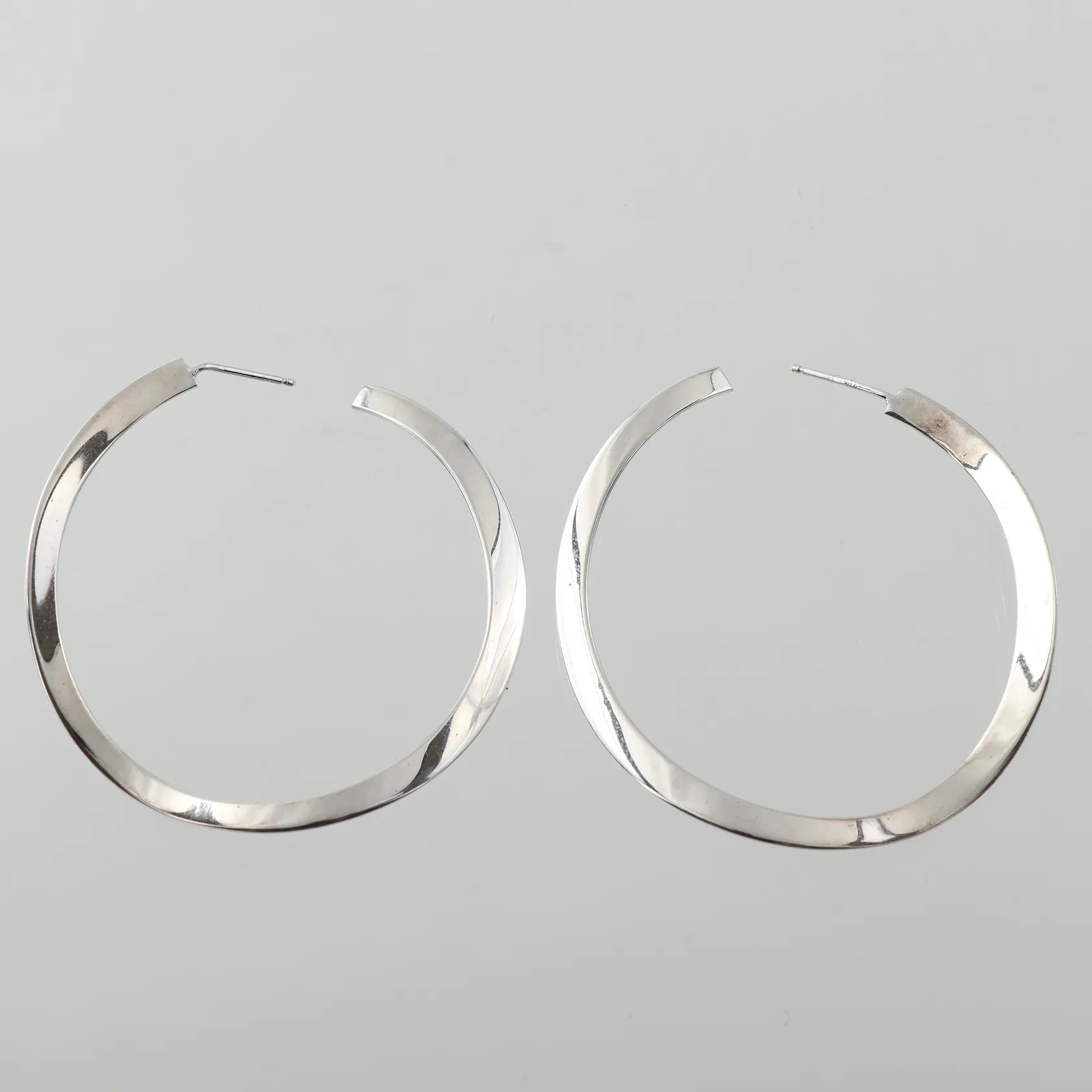 Parörhängen, Ø ca 48mm, vågiga och platta , lås saknas, silver 925/1000 Vikt: 6,9 g.