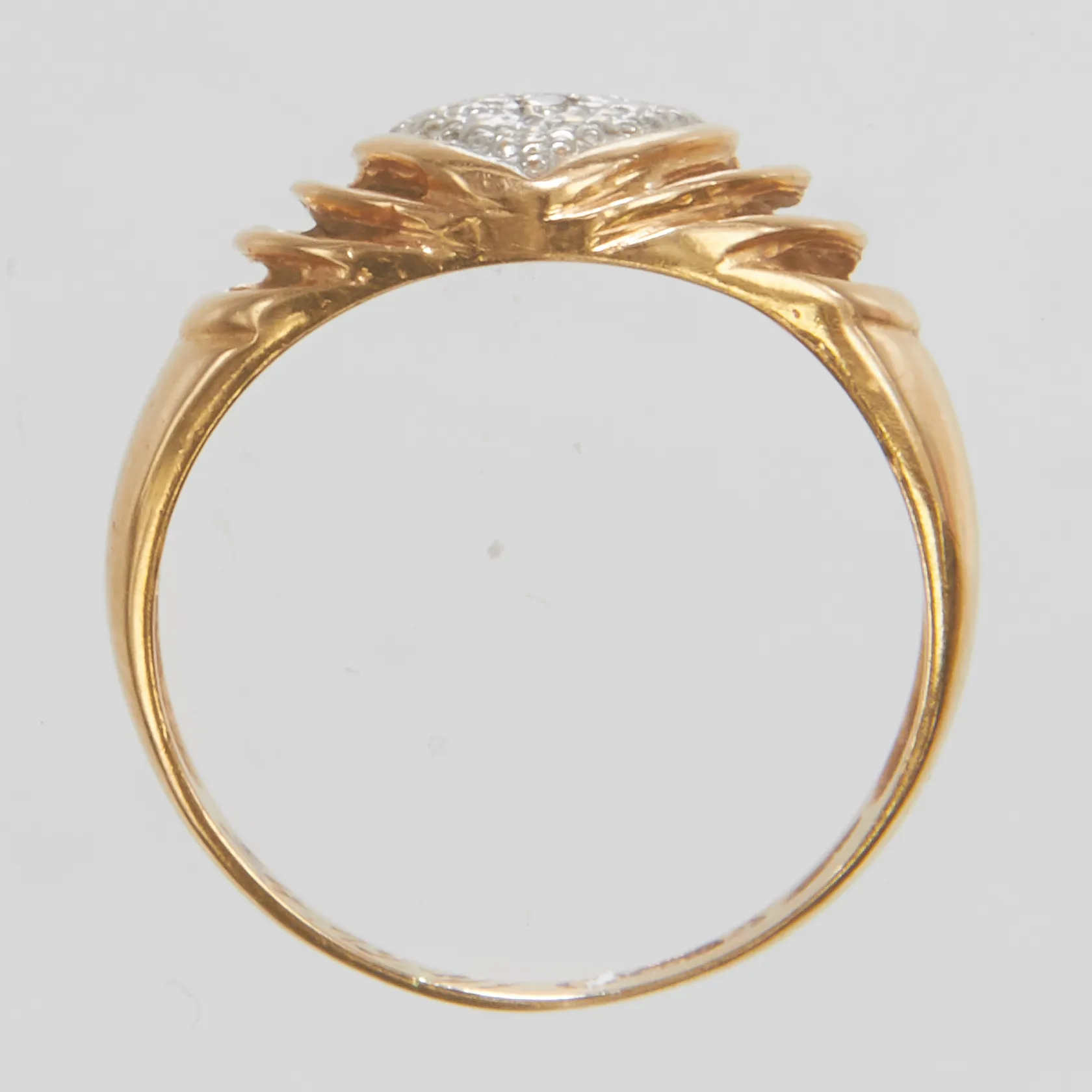 Ring, åttkantslipad diamant 1 x ca 0,005ct, stl 14¾, bredd 1,5-6,5mm, tvåfärgad, 14K Vikt: 1,5 g.