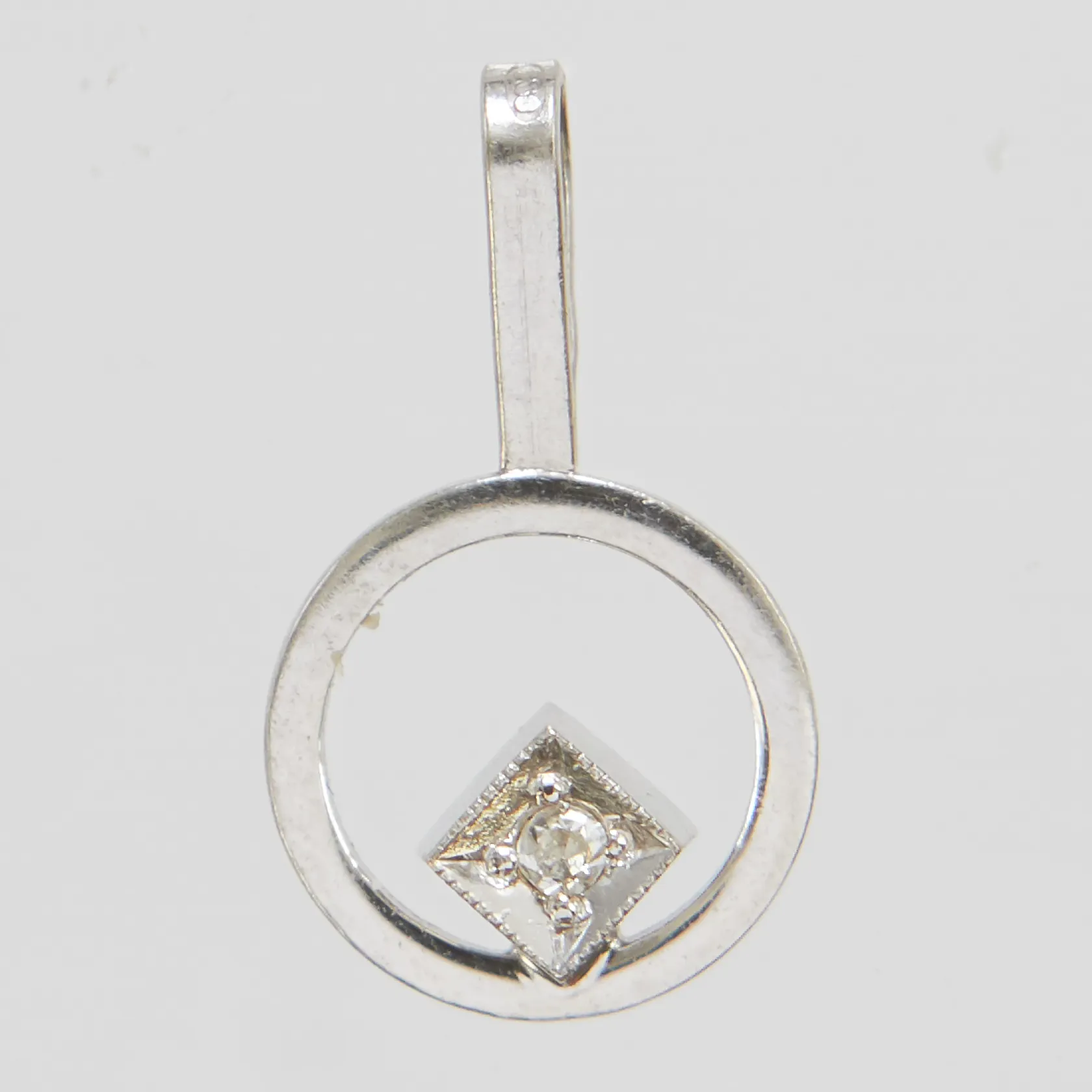 Hänge, åttkantslipad diamant 1x ca 0,10ct, längd inkl ögla 15,7mm, Ø9mm, vitguld, 18K Vikt: 0,7 g.