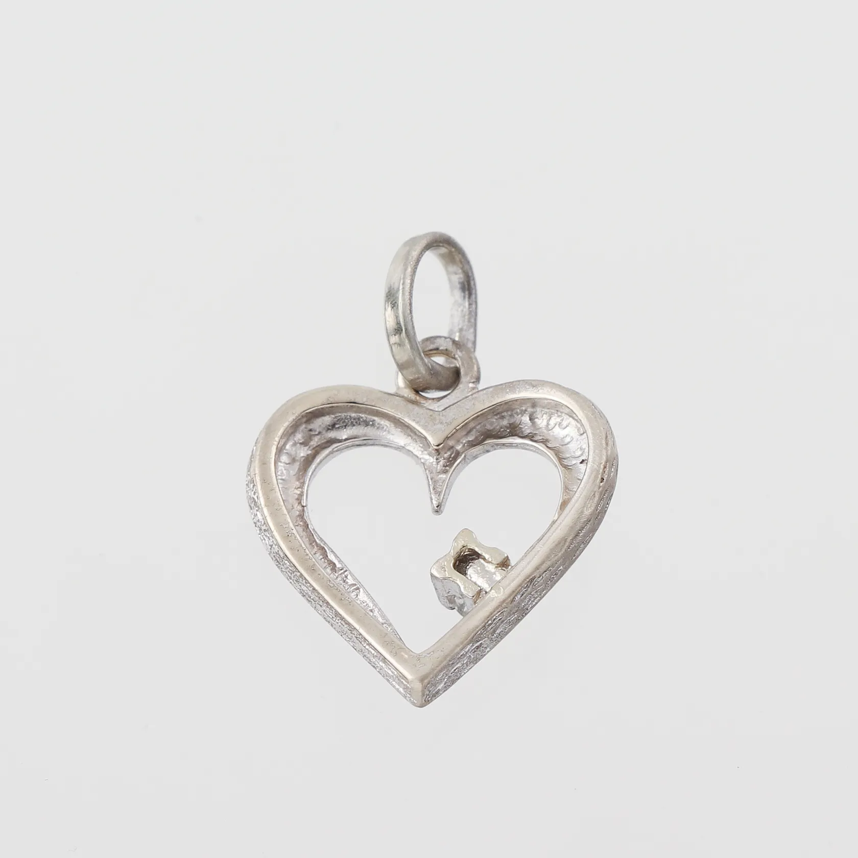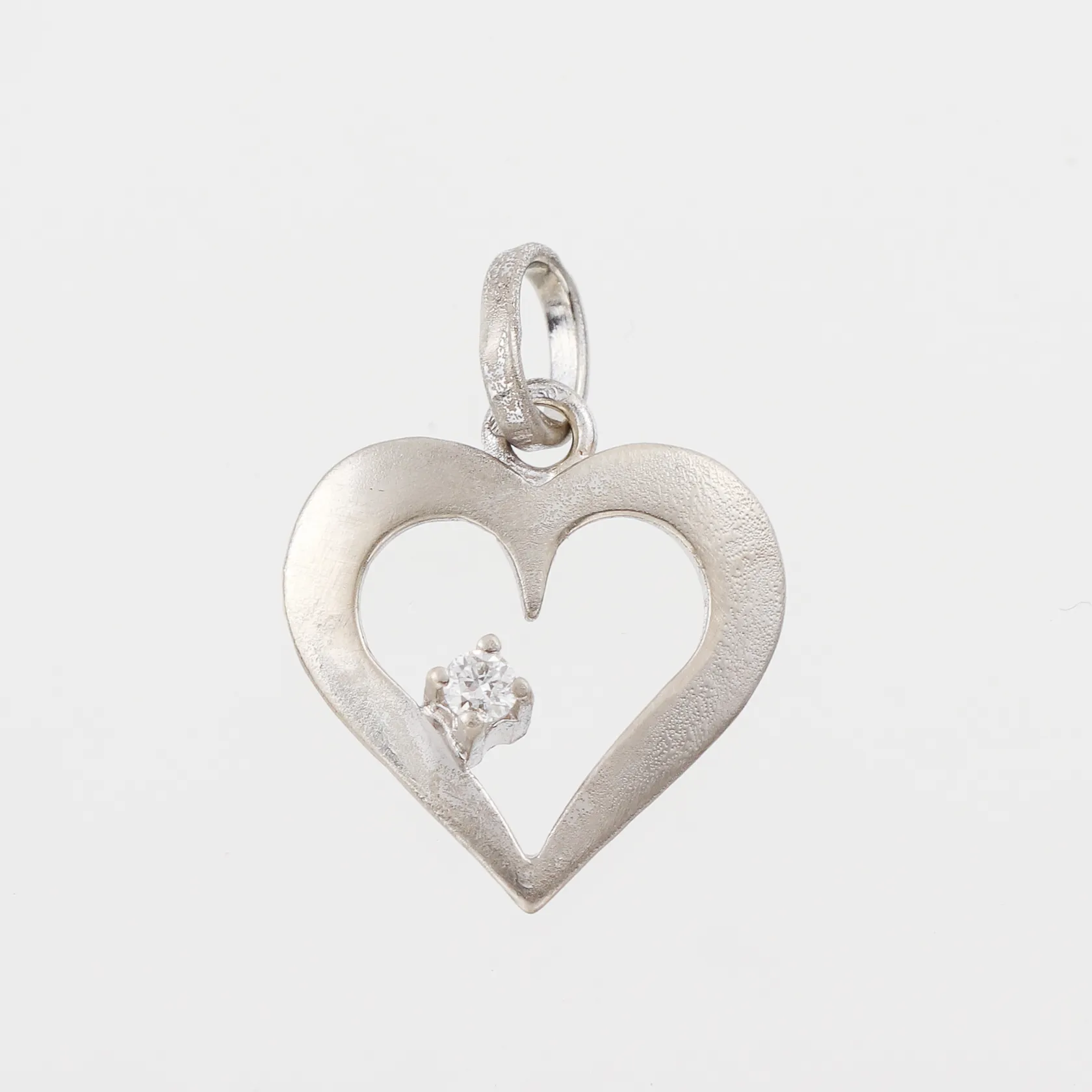 Hänge matterat "Hjärta med liten diamant", höjd 13mm, 18k vitguld Vikt: 1,3 g.