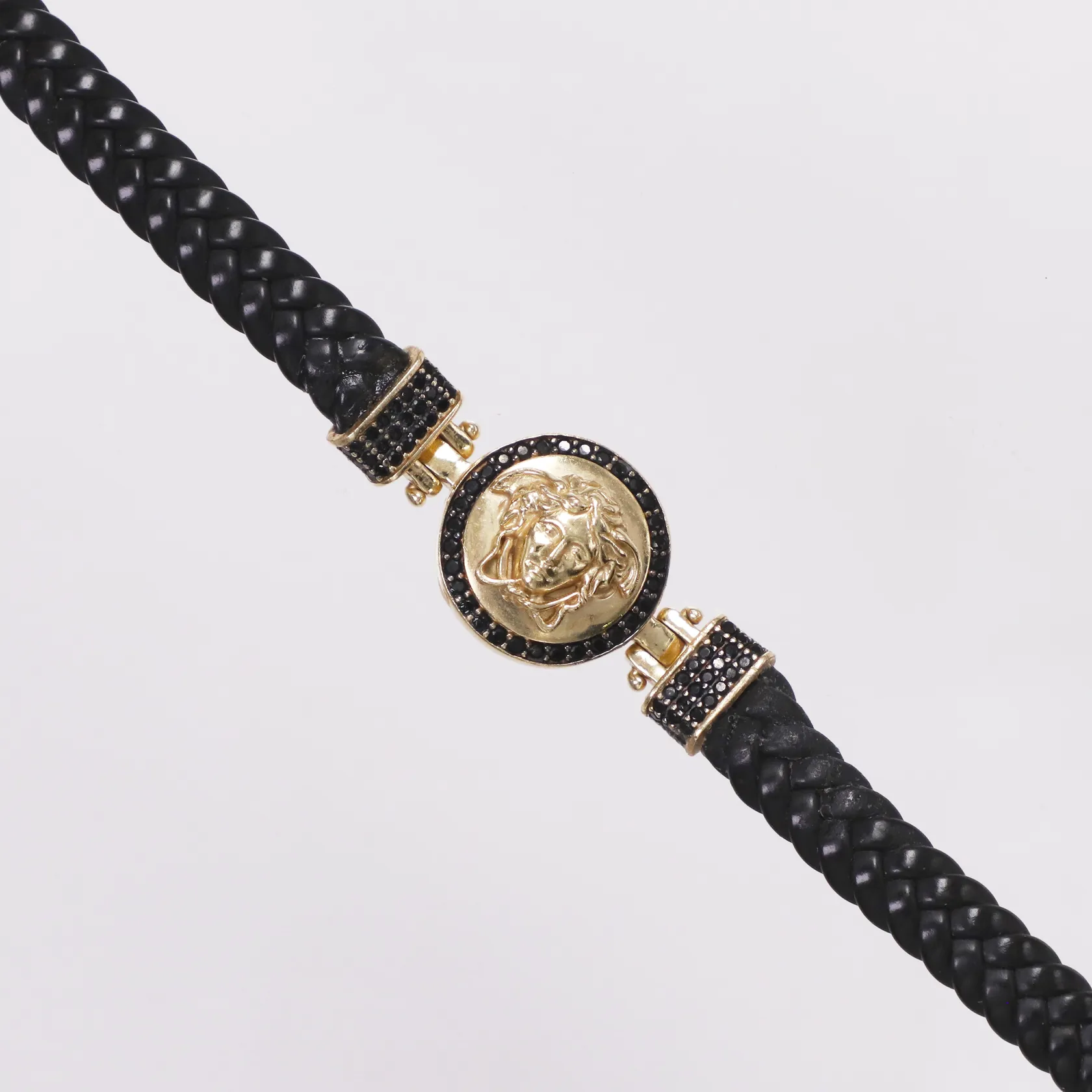 Armband Medusa, svarta stenar, 18,5cm, gummiband, låsåttor saknas, OBS! ej märkesdesign, 14K, bruttovikt 12,1gram Vikt: 12,1 g.