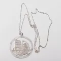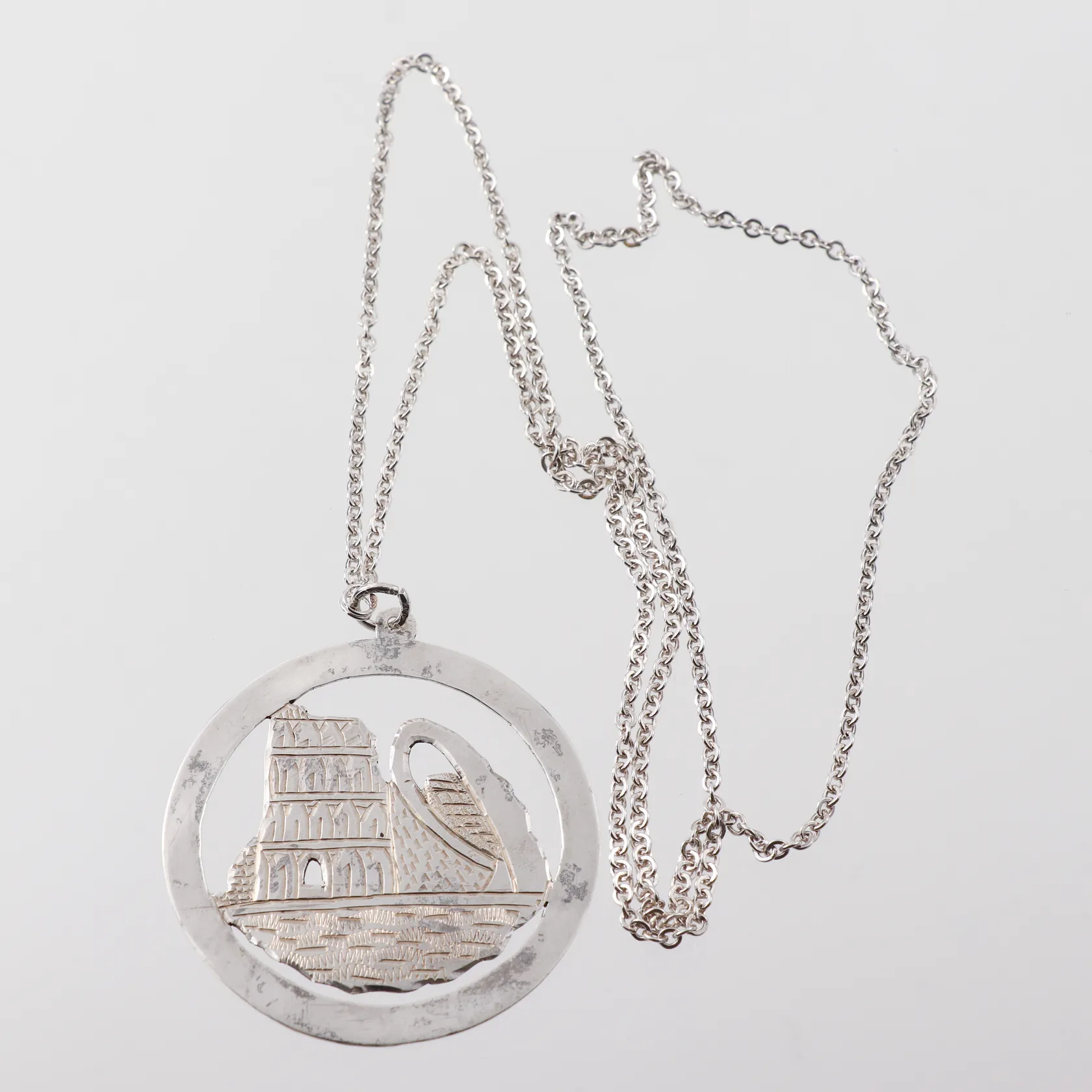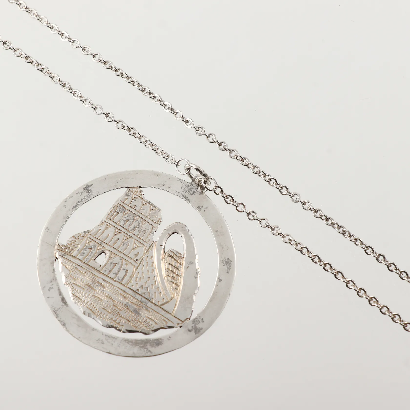 Halssmycke längd kedja 60cm med hänge Ø 42mm, ostämplat silver Vikt: 10,3 g.