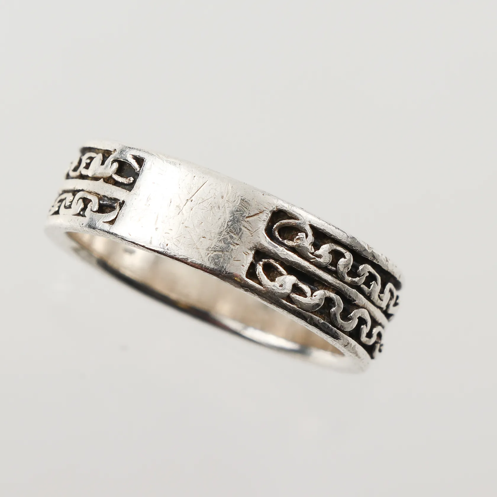 Ring Mönstrad nästan runt, stl 22mm, bredd 7,3mm, silver 925/1000 Vikt: 8,4 g.