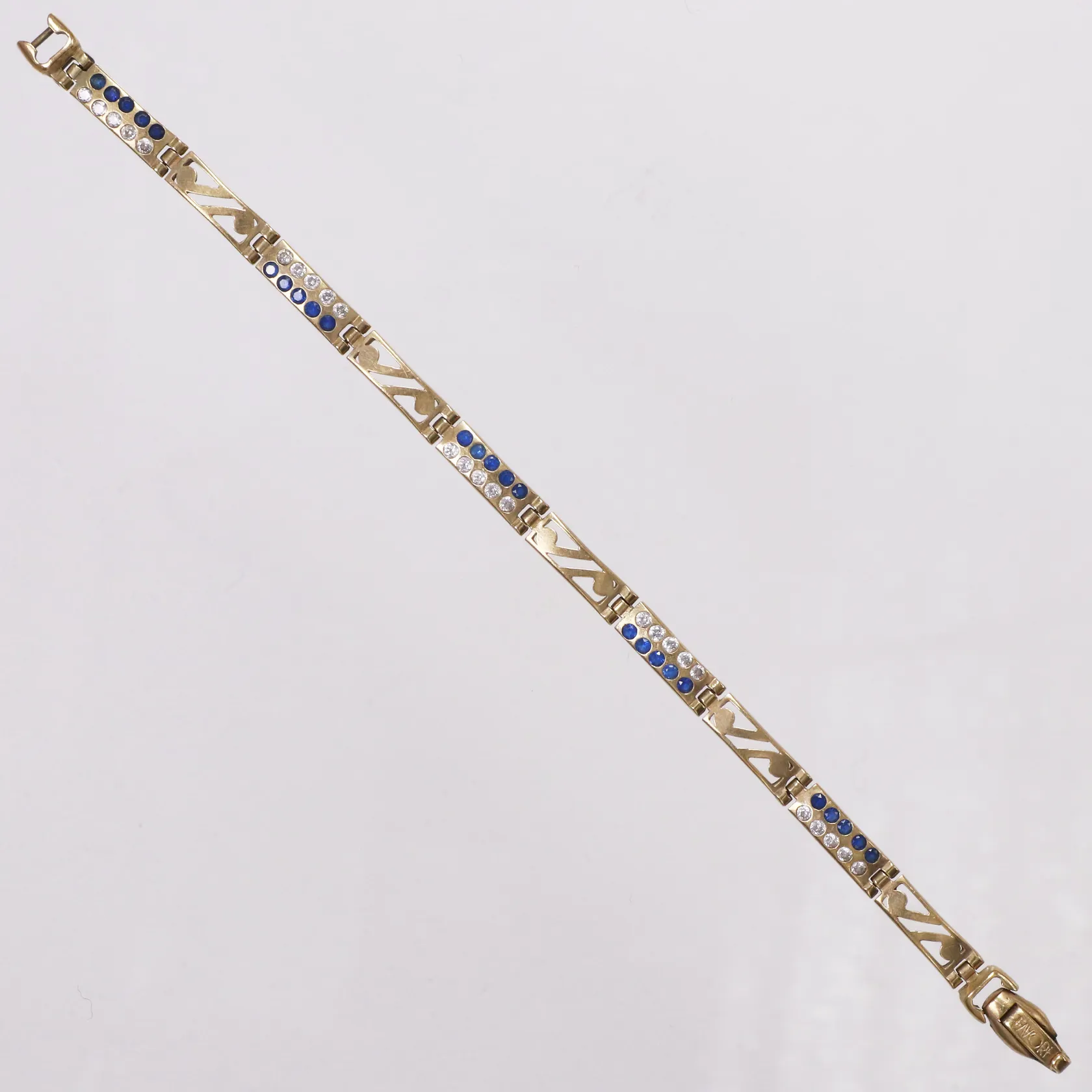 Armband blå & vita stenar, 15,5cm, bredd 4,5mm, 14K Vikt: 8,1 g.