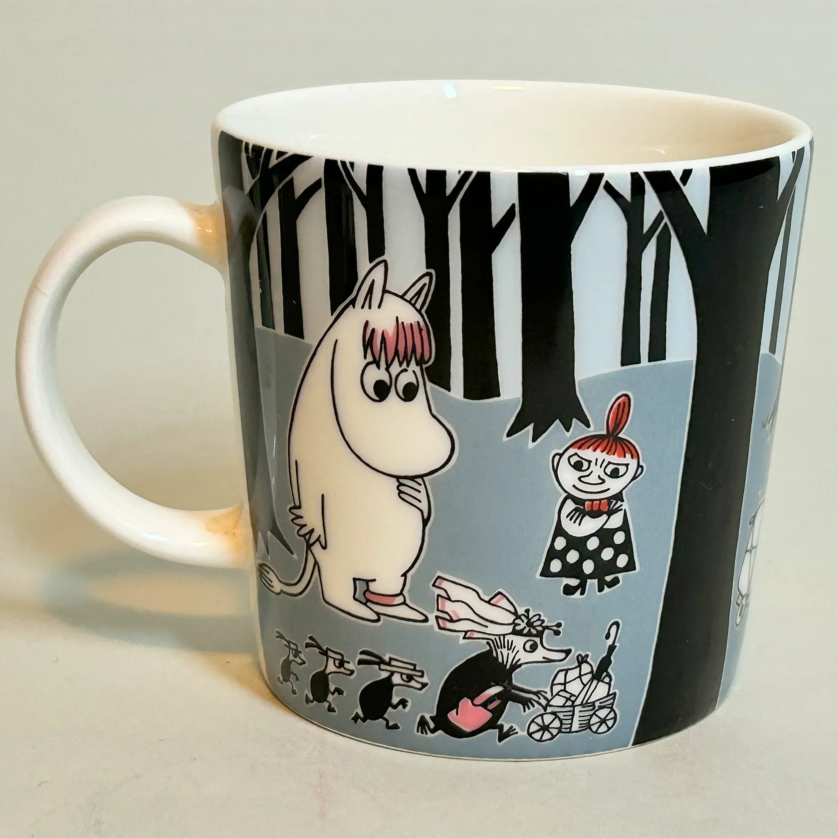 Mugg Mumin från Arabia Mumin på äventyr flytten, 2013 bland annat från serien Mumin och kometen, höjd 8 cm Ø8,5cm, rymmer 0,3l