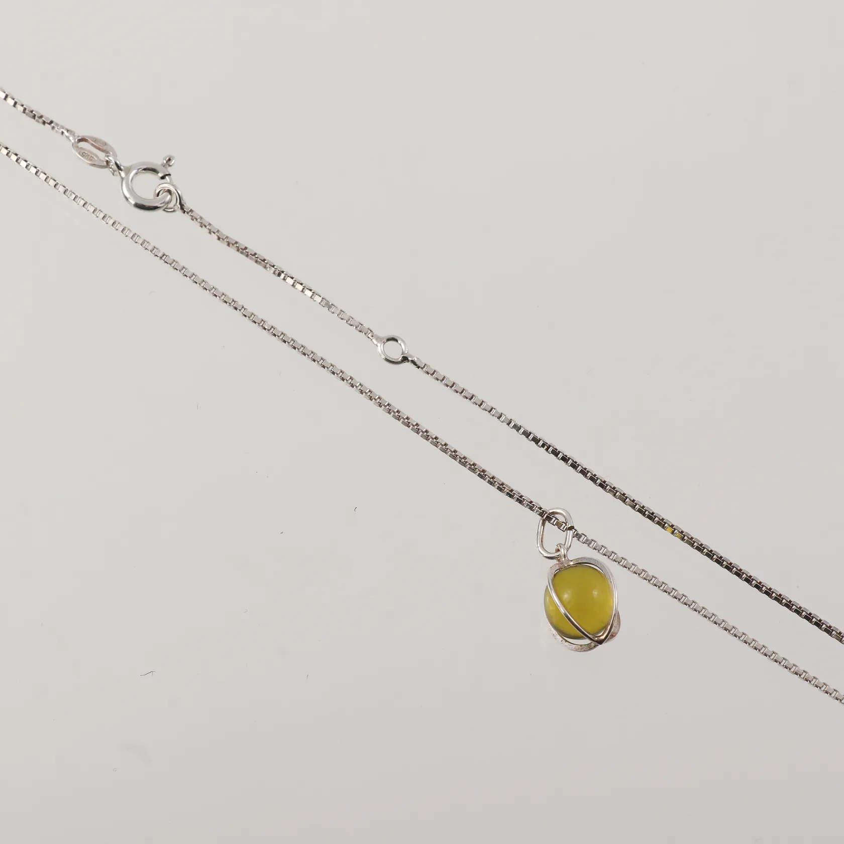 Kedja Venezia 34+3cm, silver 925/1000 med hänge grön kula, silver 830/1000 Vikt: 3 g.