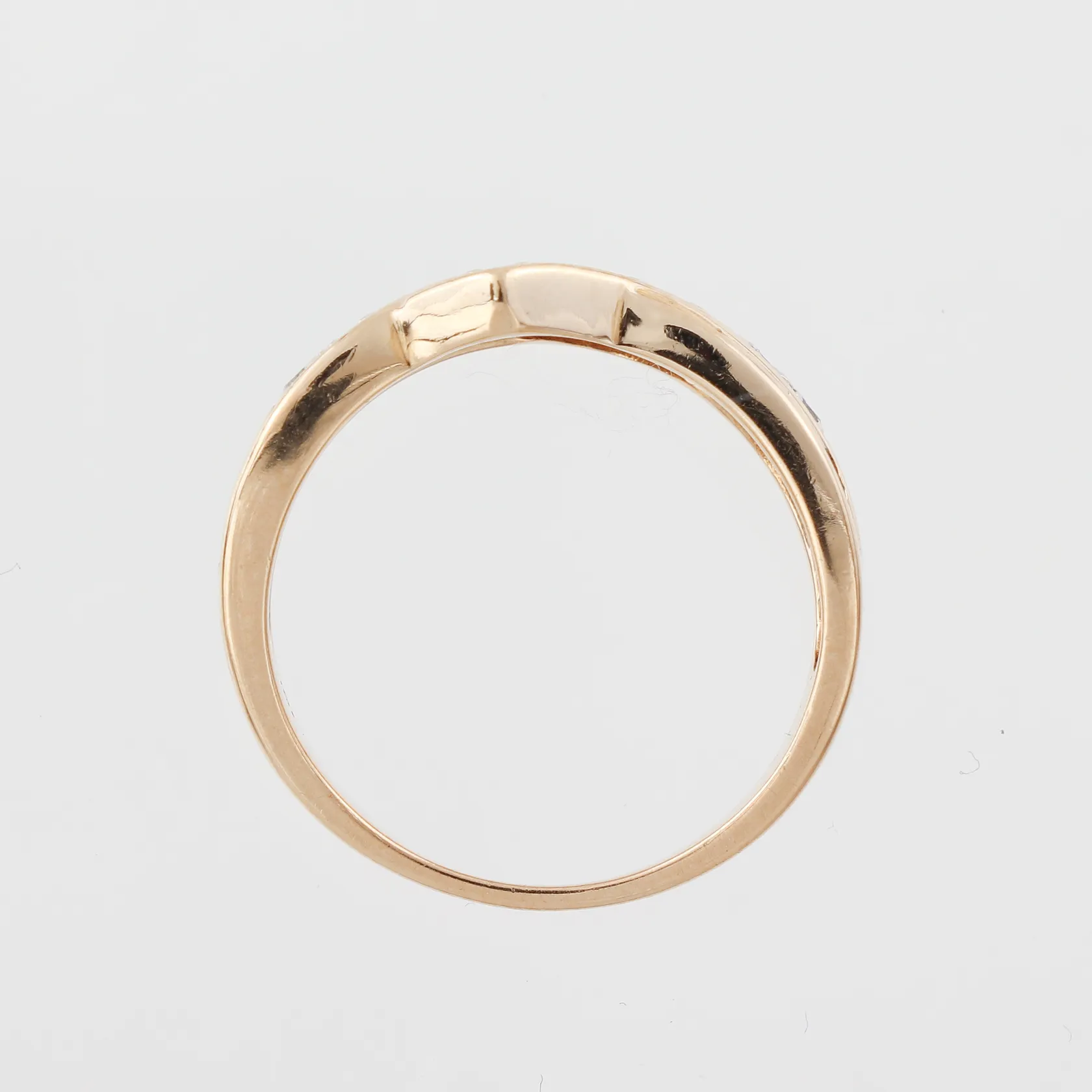 Ring med diamanter på totalt ca 0.14 ct, Guldfynd AB, storlek 17 mm, bredd 2.6-8.5 mm, 18k. Vikt: 5,1 g.